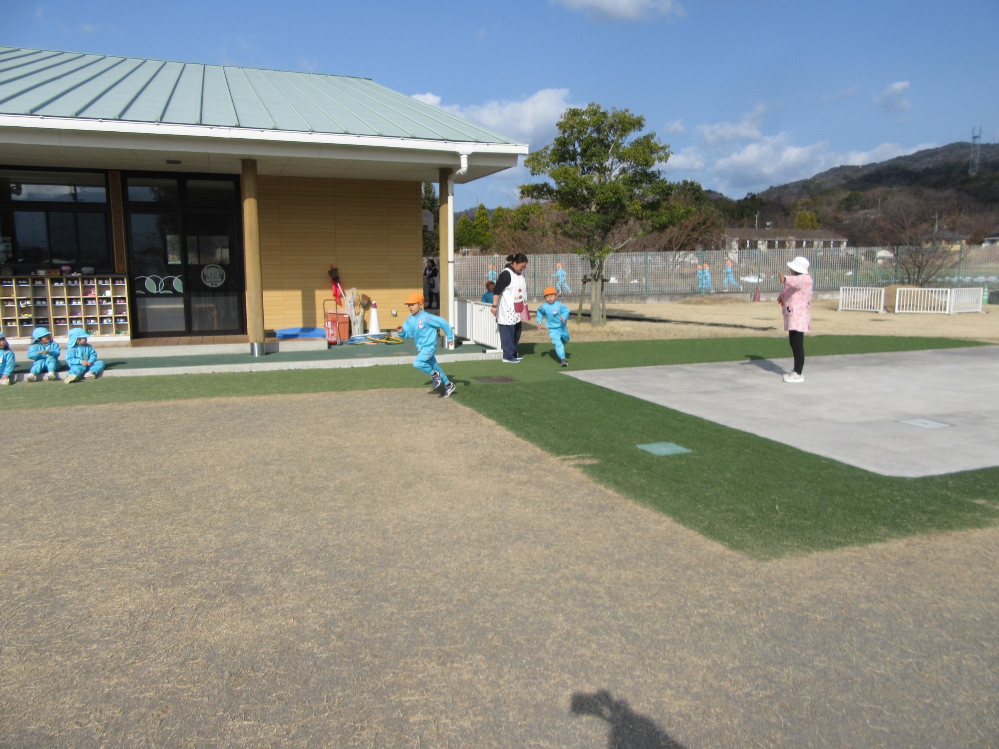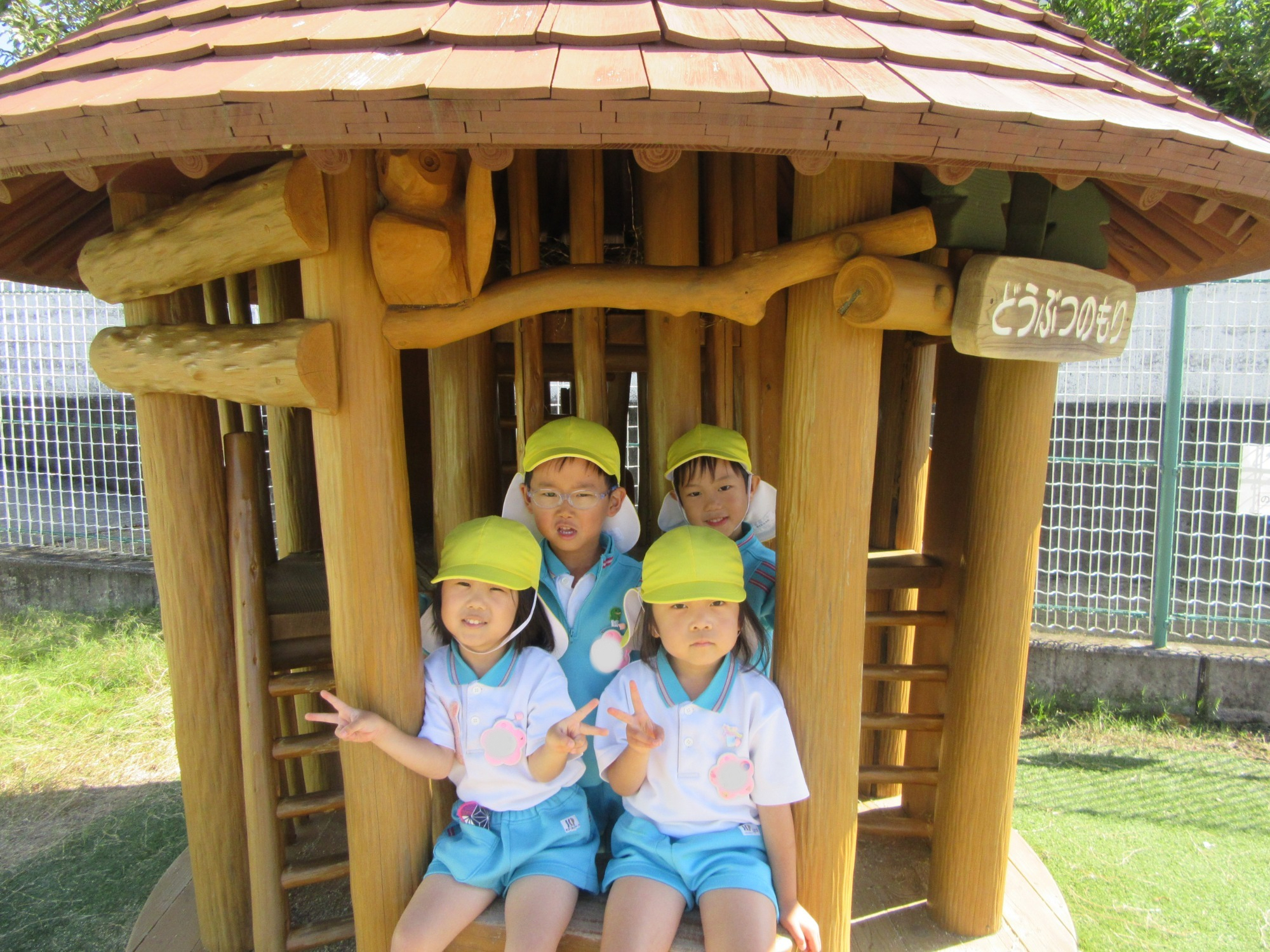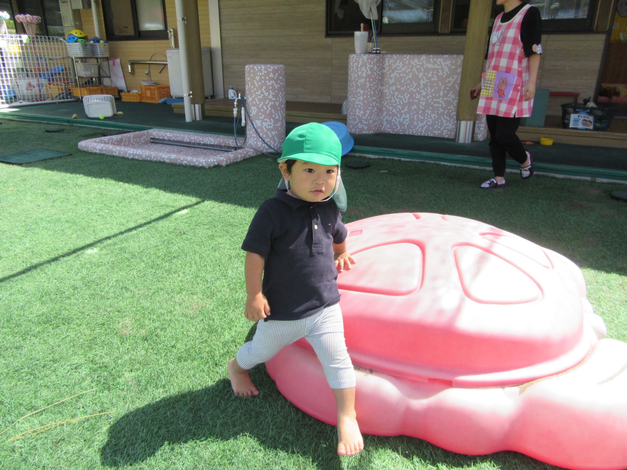 今日も元気に外遊び!とても楽しそうです。だけど、熱中症には気をつけて水分補給はしっかりとしていきたいですね。