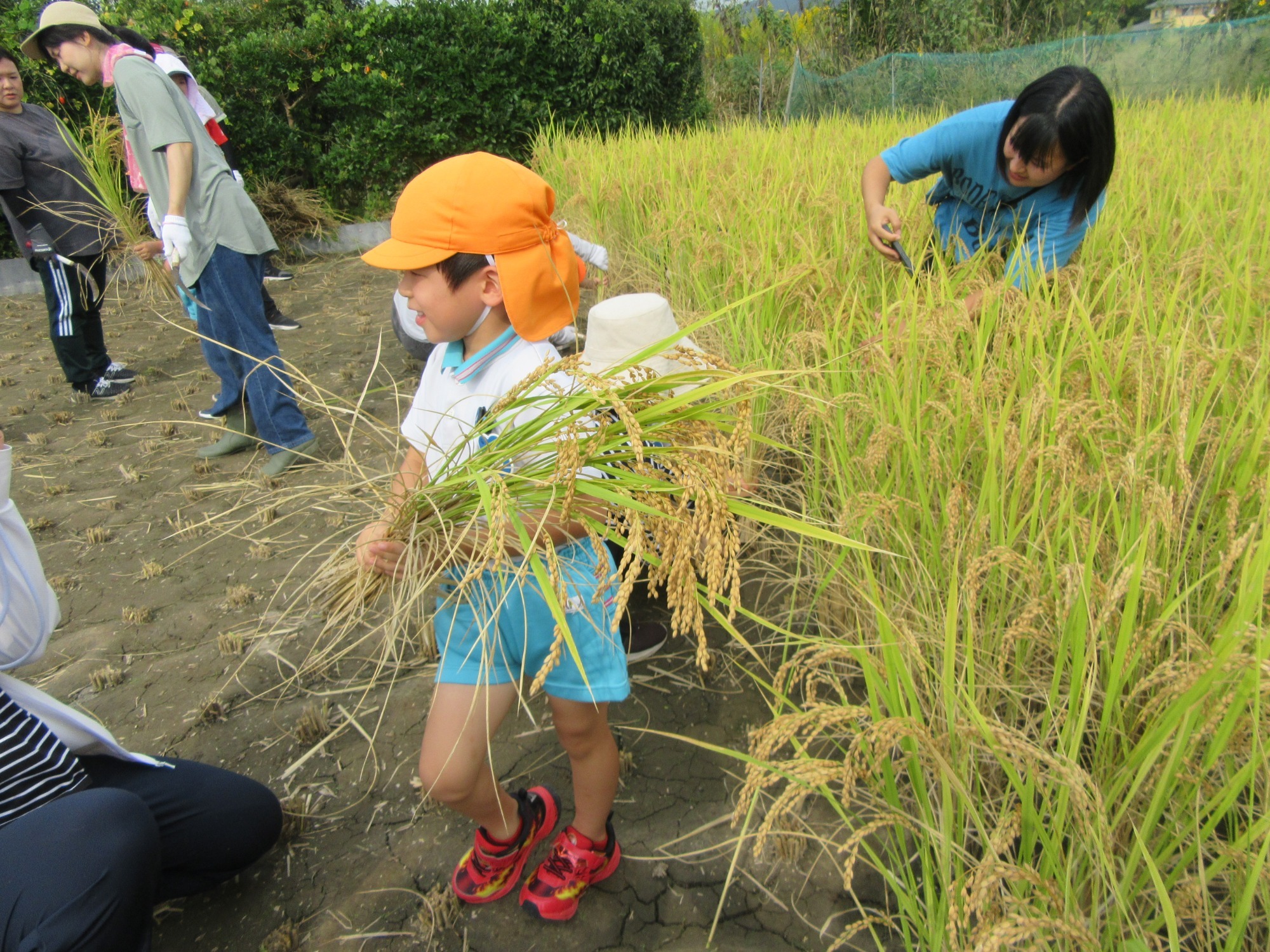 6月に植えたもち米の稲刈りをしました!このもち米でお餅つきをします!その頃は寒い冬です。季節の移ろいとともにみんなの成長も感じながら日々が過ぎていきますね。