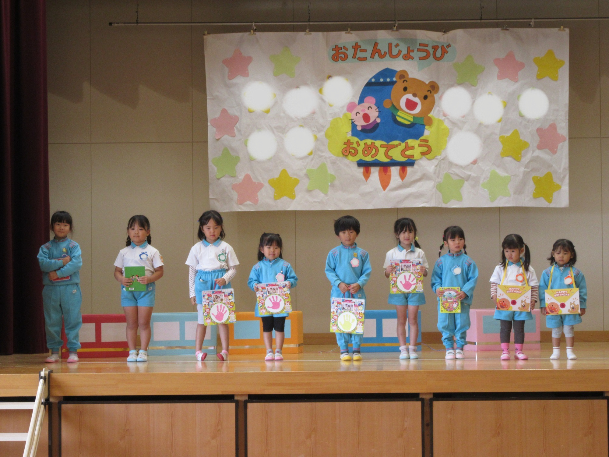 10月生まれさんのお誕生会をしました。元気にしっかりと発表できました!ぱんだ組さんも上手でしたね♪みんなおめでとう☆