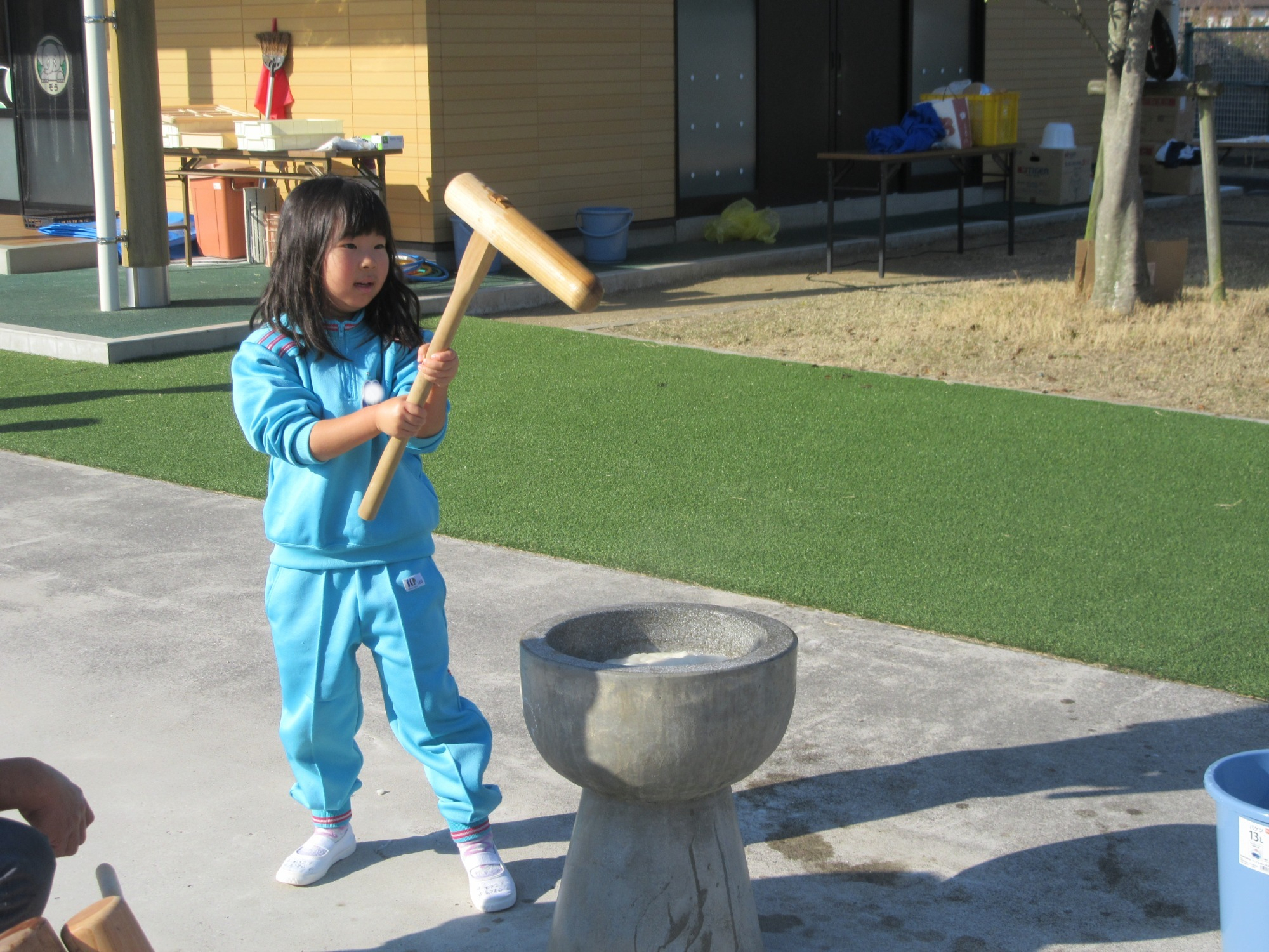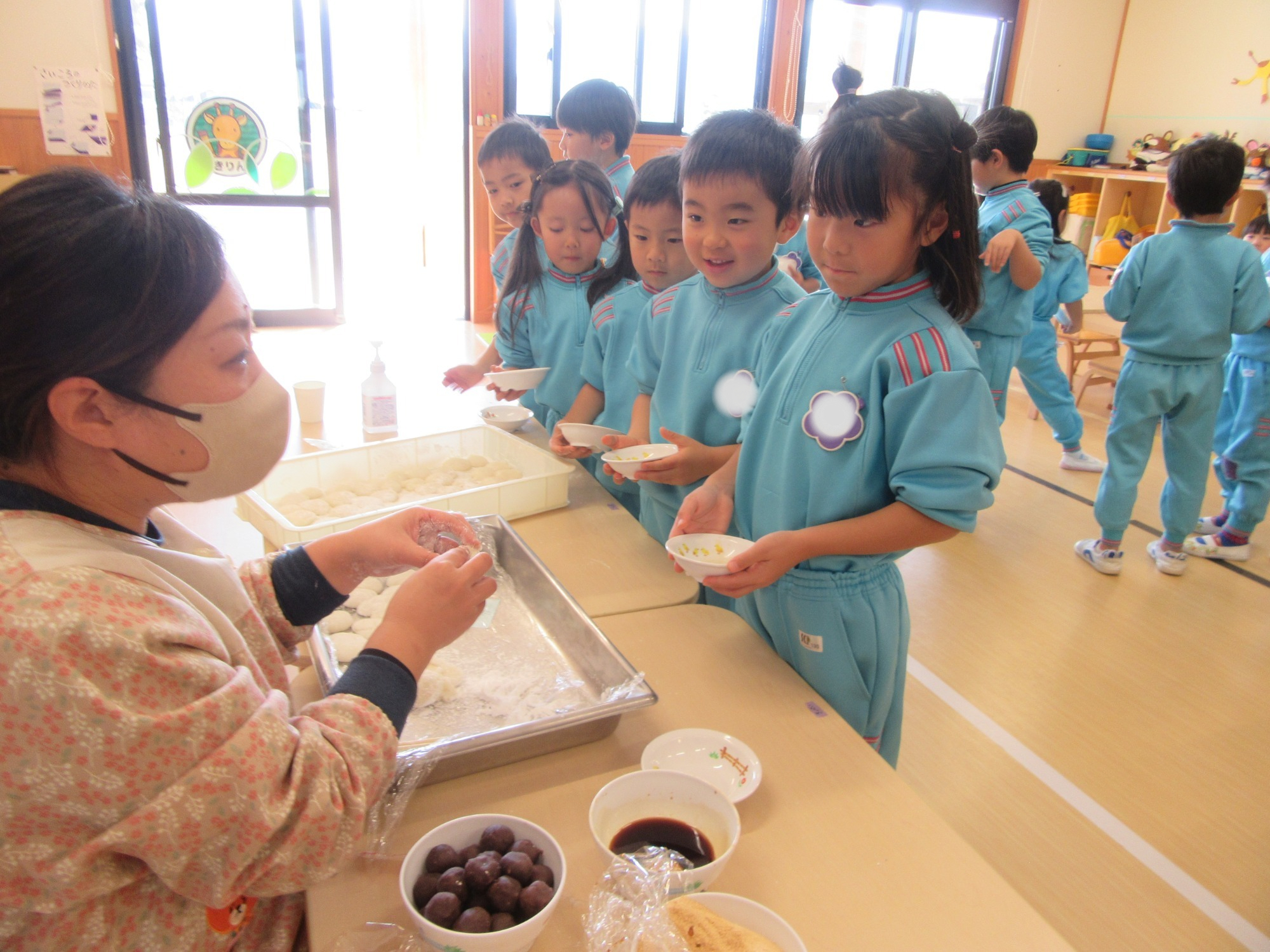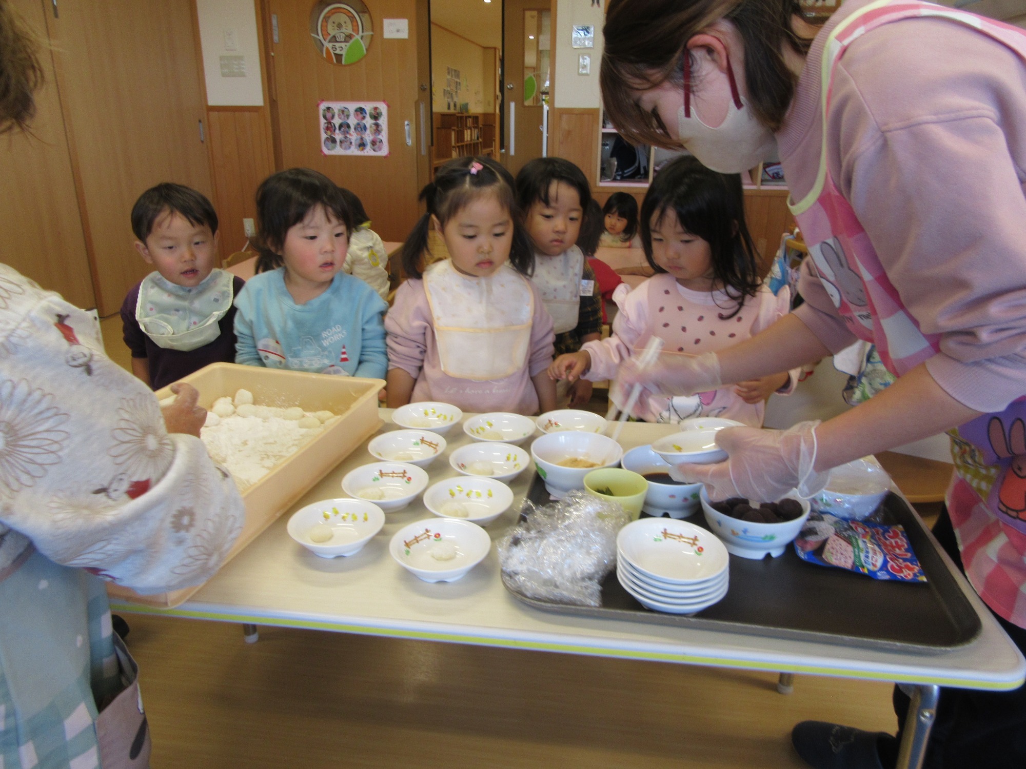 秋に稲刈りしたもち米を使って、お餅つきをしました!園児も先生も楽しみにしていました♪よいせ!よいせ!の掛け声でぺったんぺったんつきました!今年は一段と柔らかくて白くてとても美味しかったです☆美味しすぎてほっぺもとろーり落ちちゃいそう!