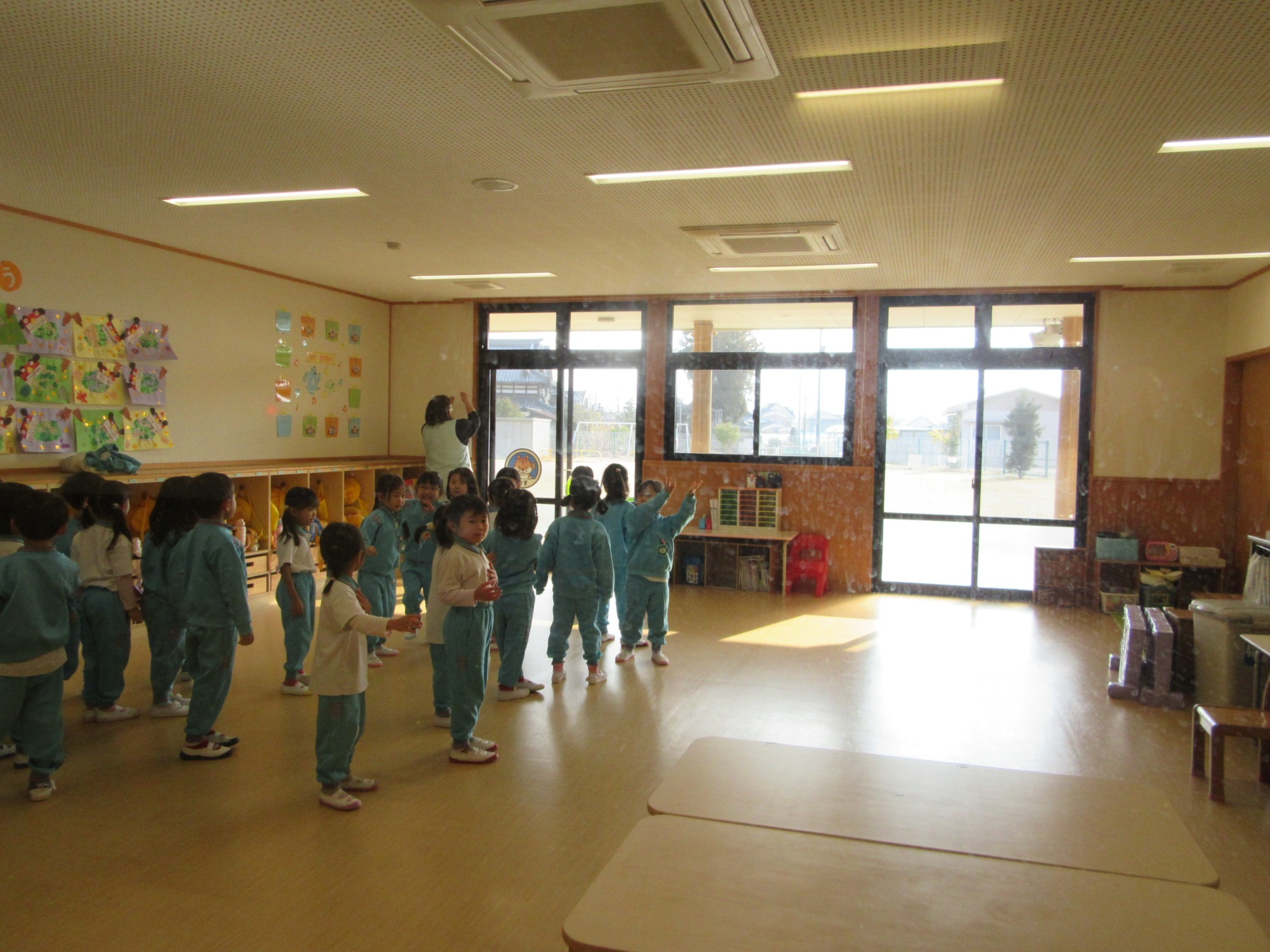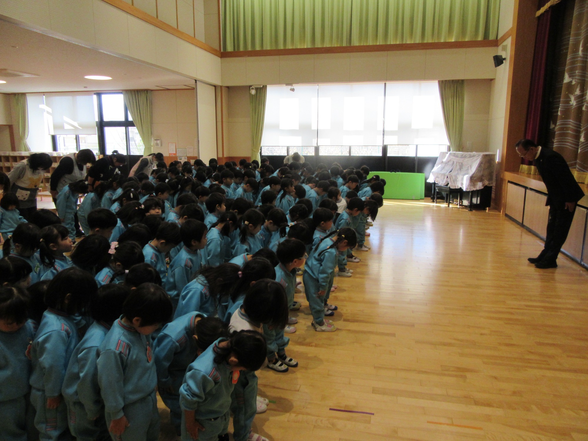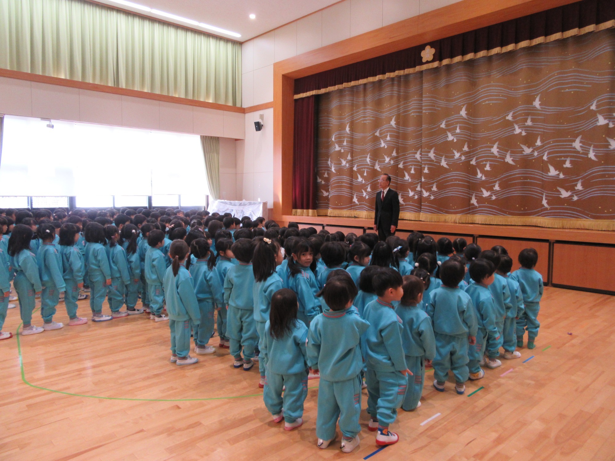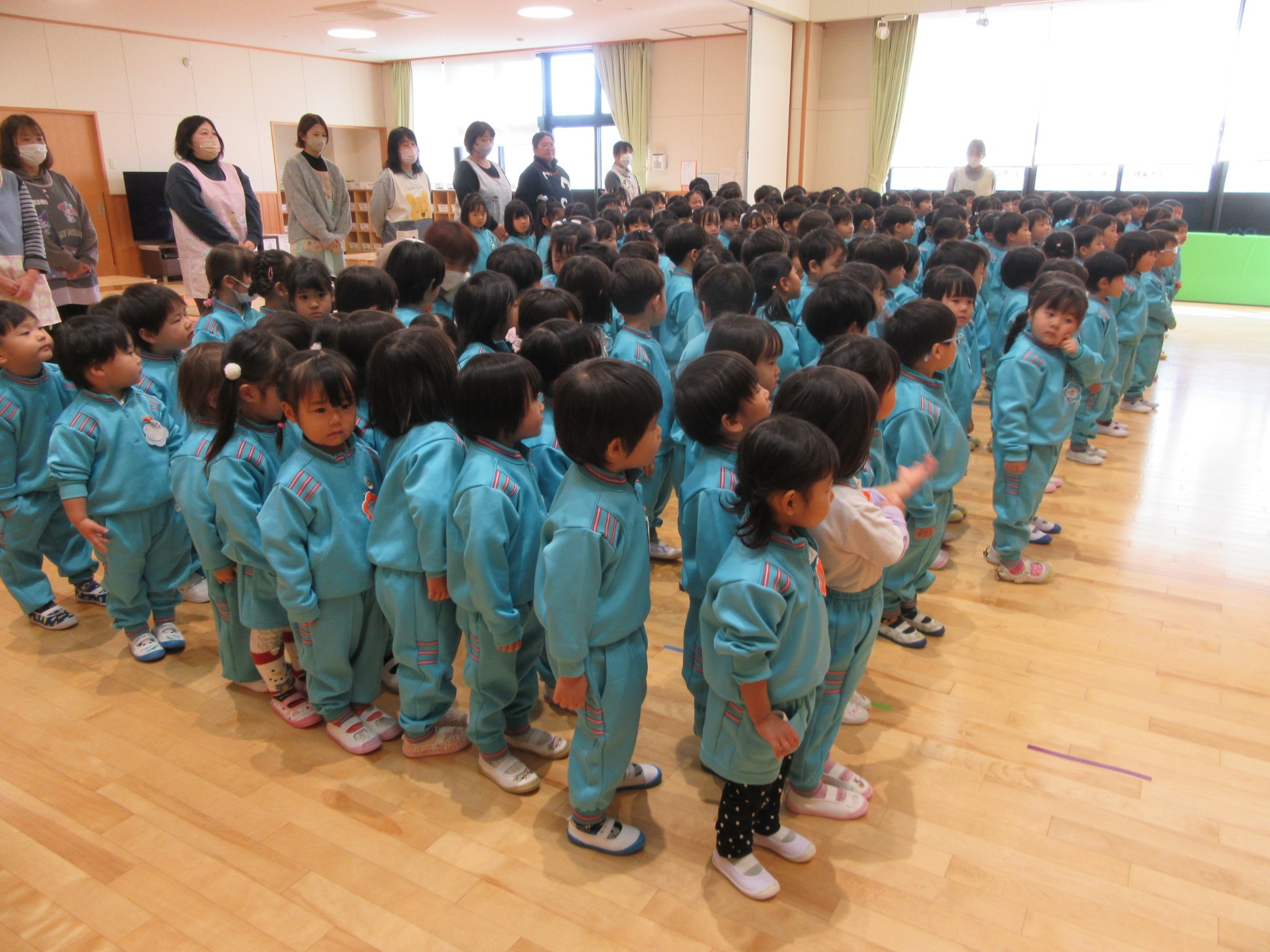 今日は2学期終業式です。2学期は行事がたくさんあるので、大忙しでしたね!よく頑張りました!楽しい思い出もたくさん増えて嬉しいです。冬休みに入りますが、健康に気を付けて過ごしてください。また3学期始業式に元気な姿で登園してくださいね!
