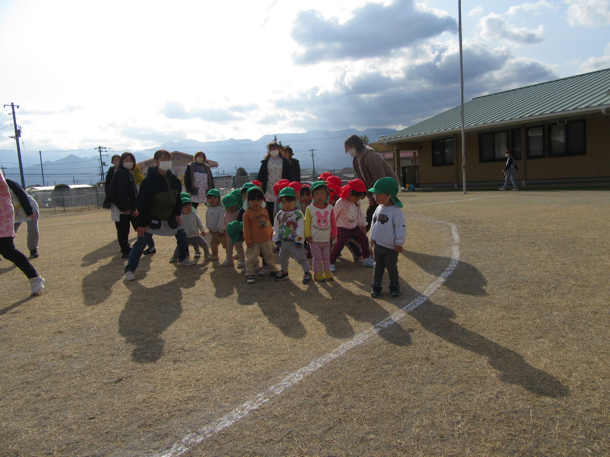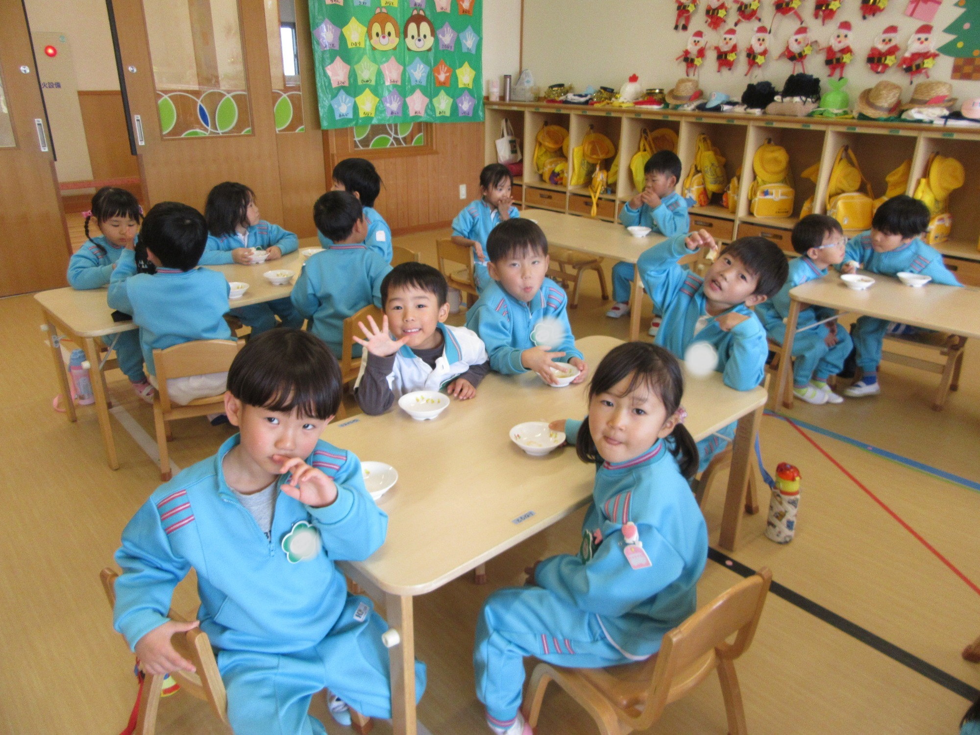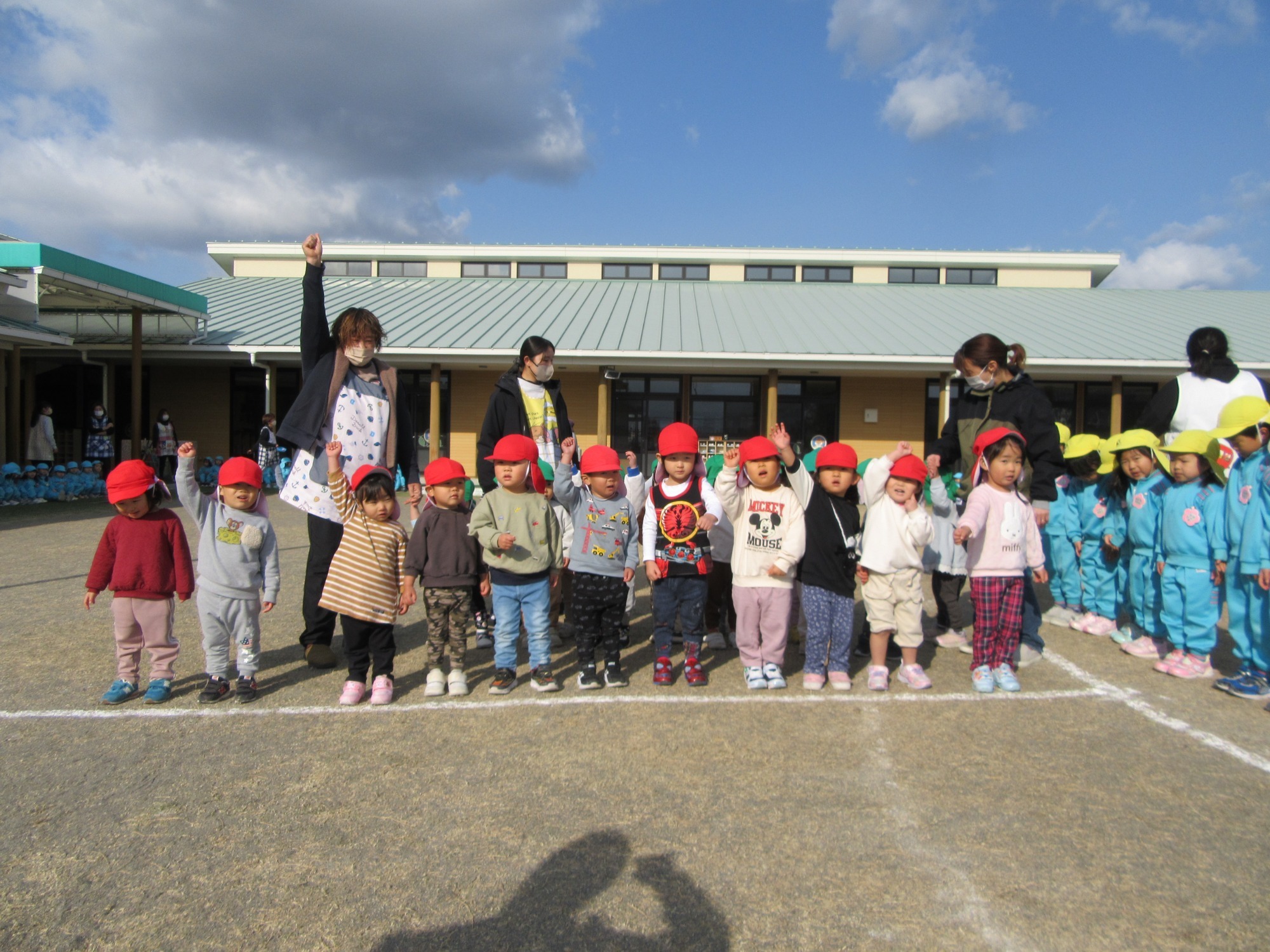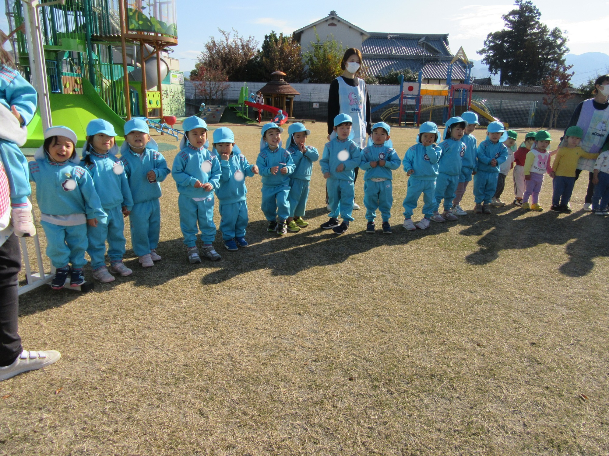 今日は2学期終業式です。2学期は行事がたくさんあるので、大忙しでしたね!よく頑張りました!楽しい思い出もたくさん増えて嬉しいです。冬休みに入りますが、健康に気を付けて過ごしてください。また3学期始業式に元気な姿で登園してくださいね!