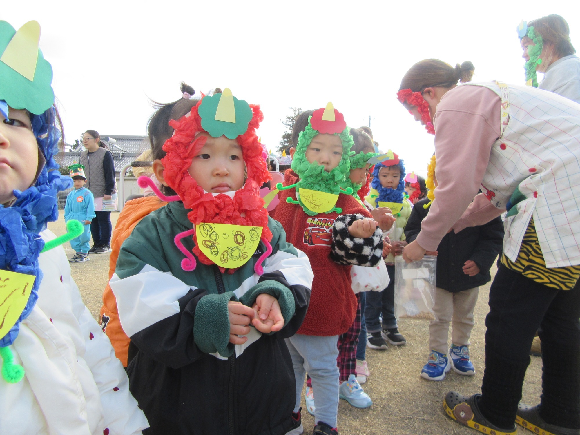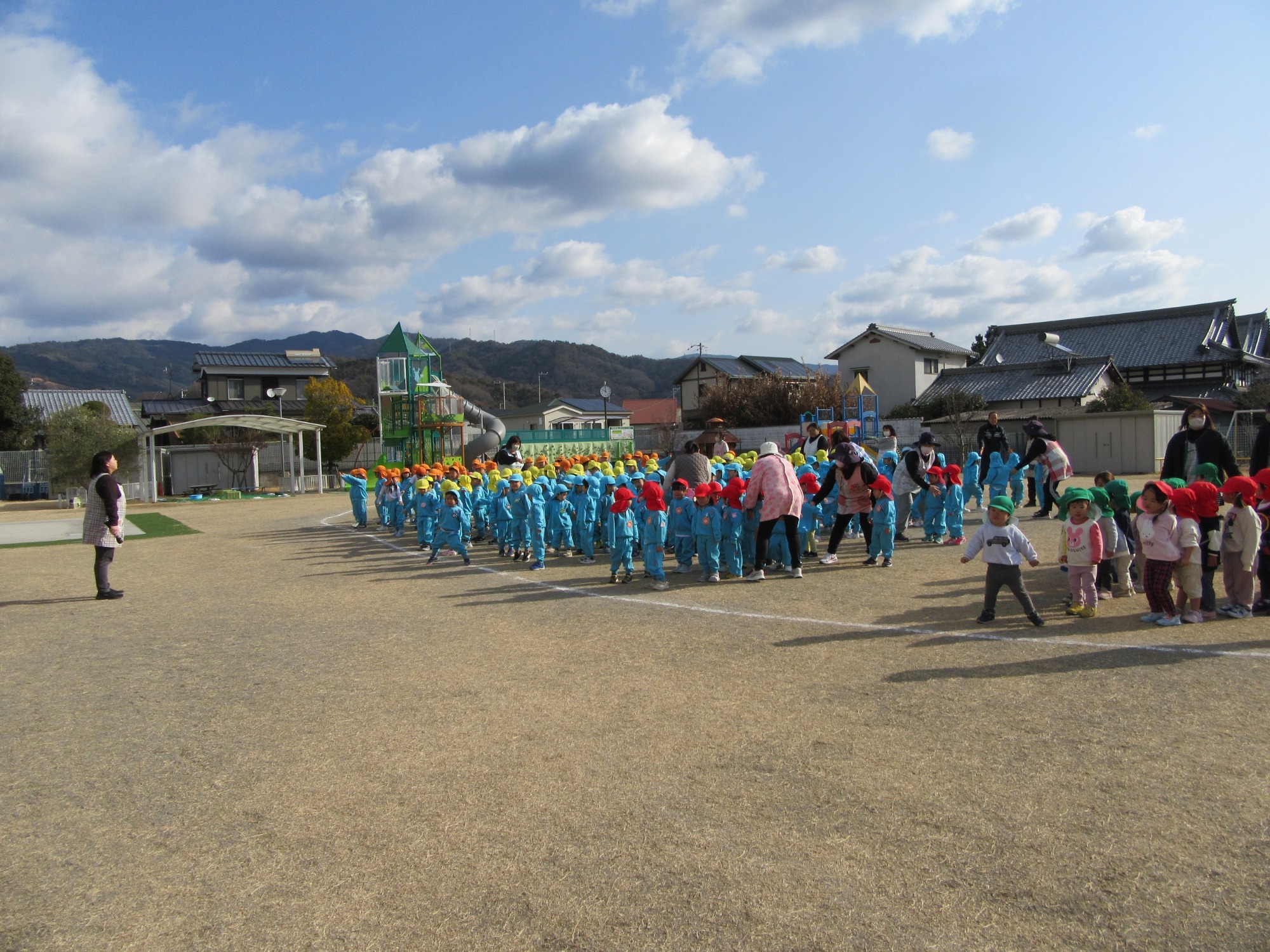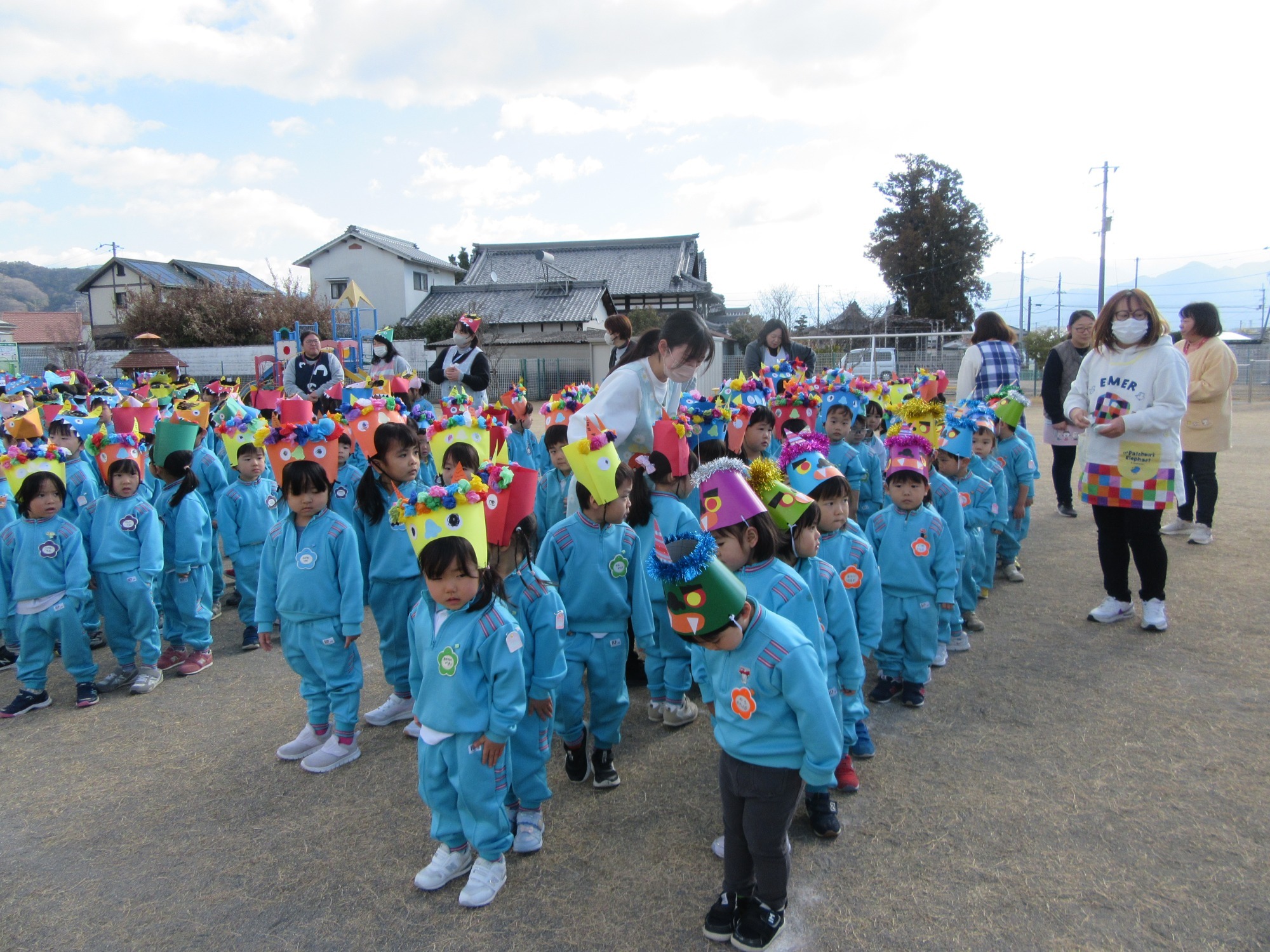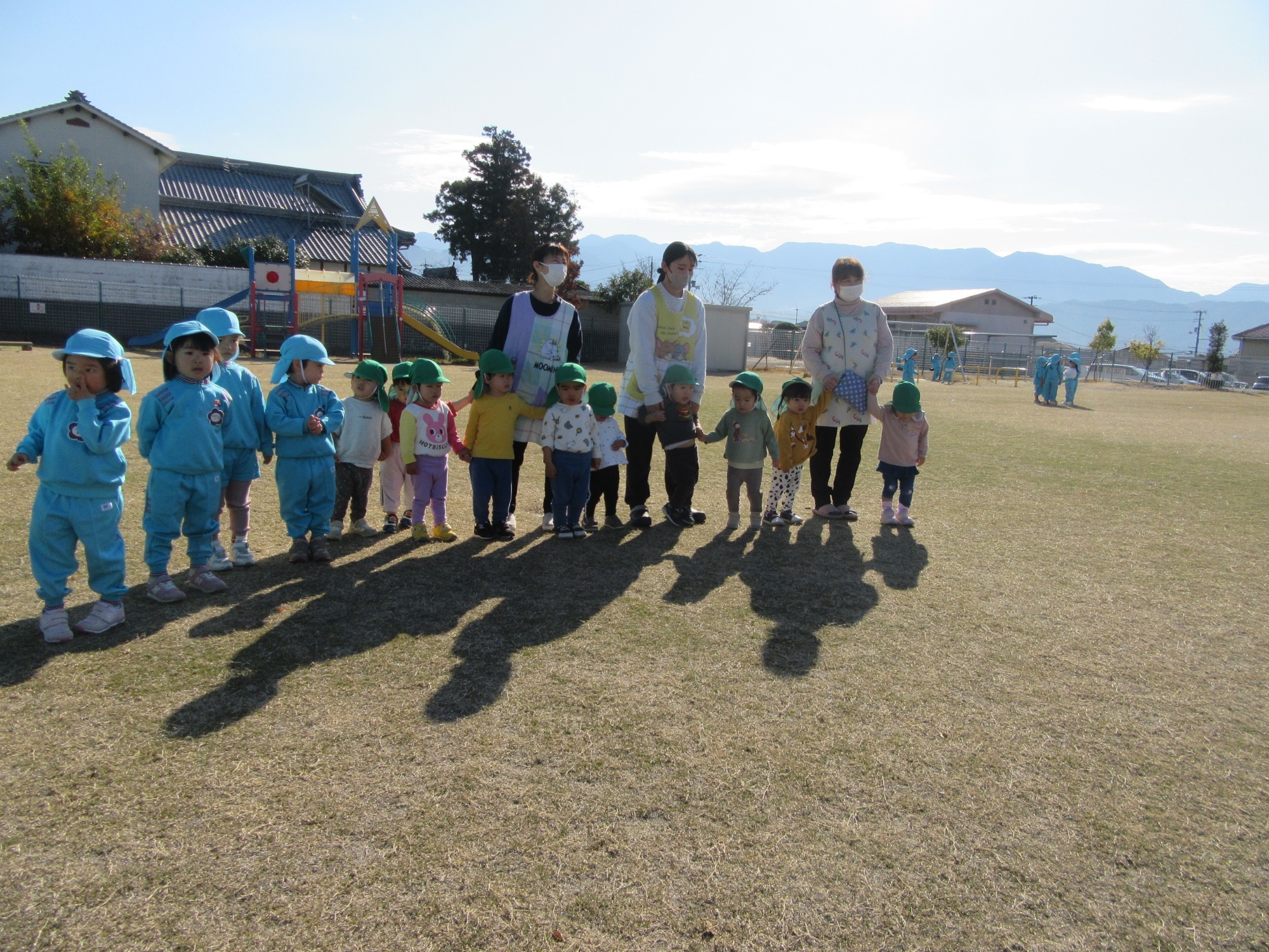 今日は2学期終業式です。2学期は行事がたくさんあるので、大忙しでしたね!よく頑張りました!楽しい思い出もたくさん増えて嬉しいです。冬休みに入りますが、健康に気を付けて過ごしてください。また3学期始業式に元気な姿で登園してくださいね!