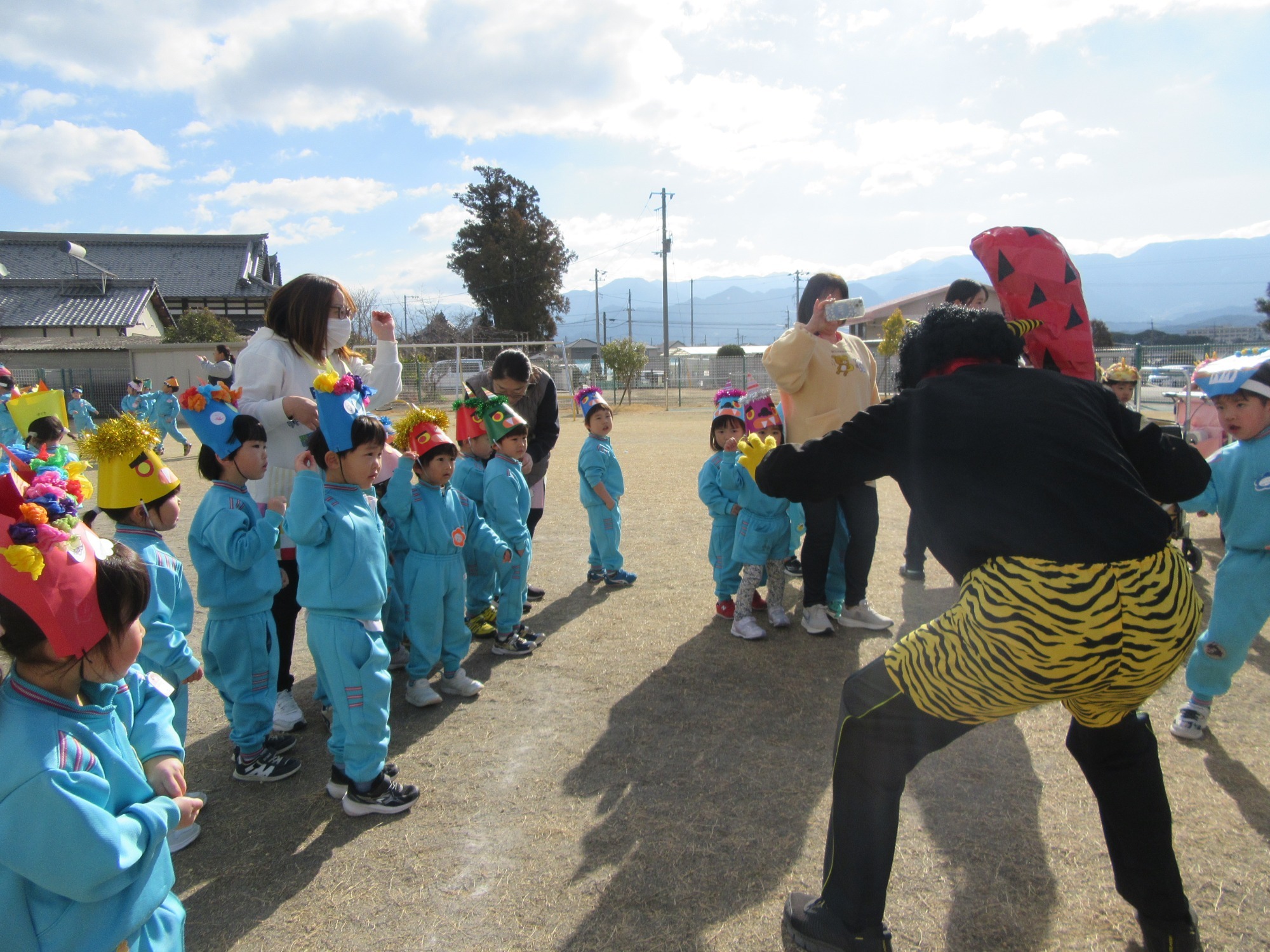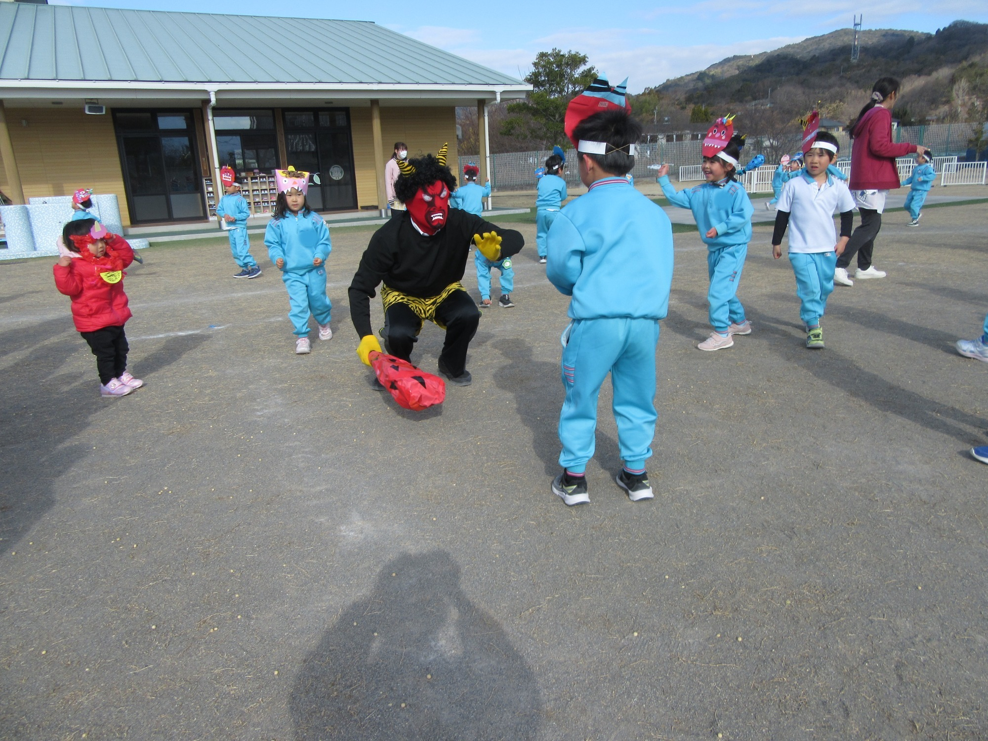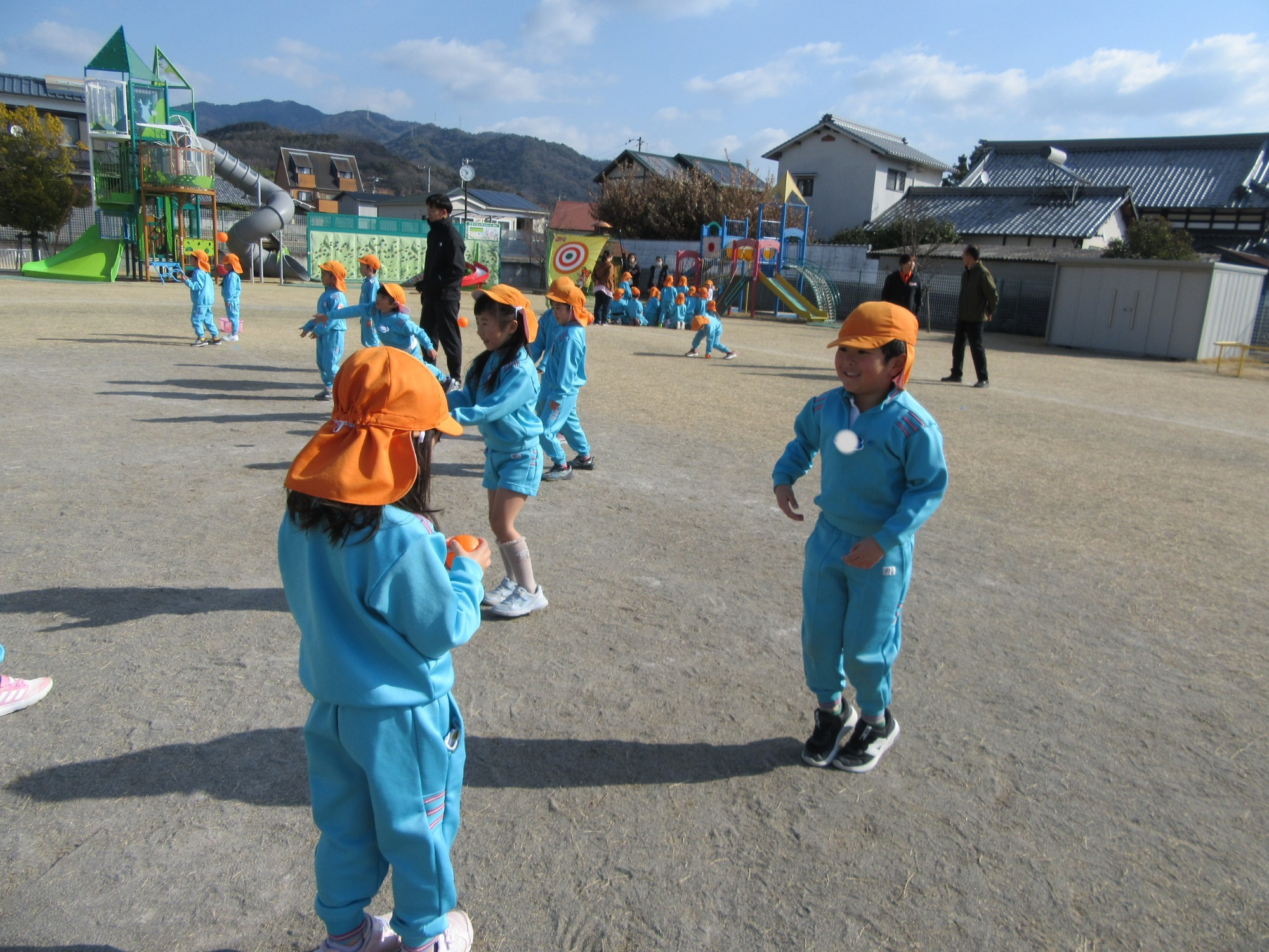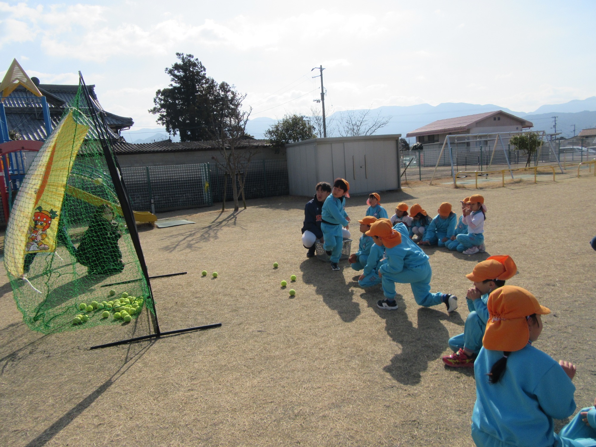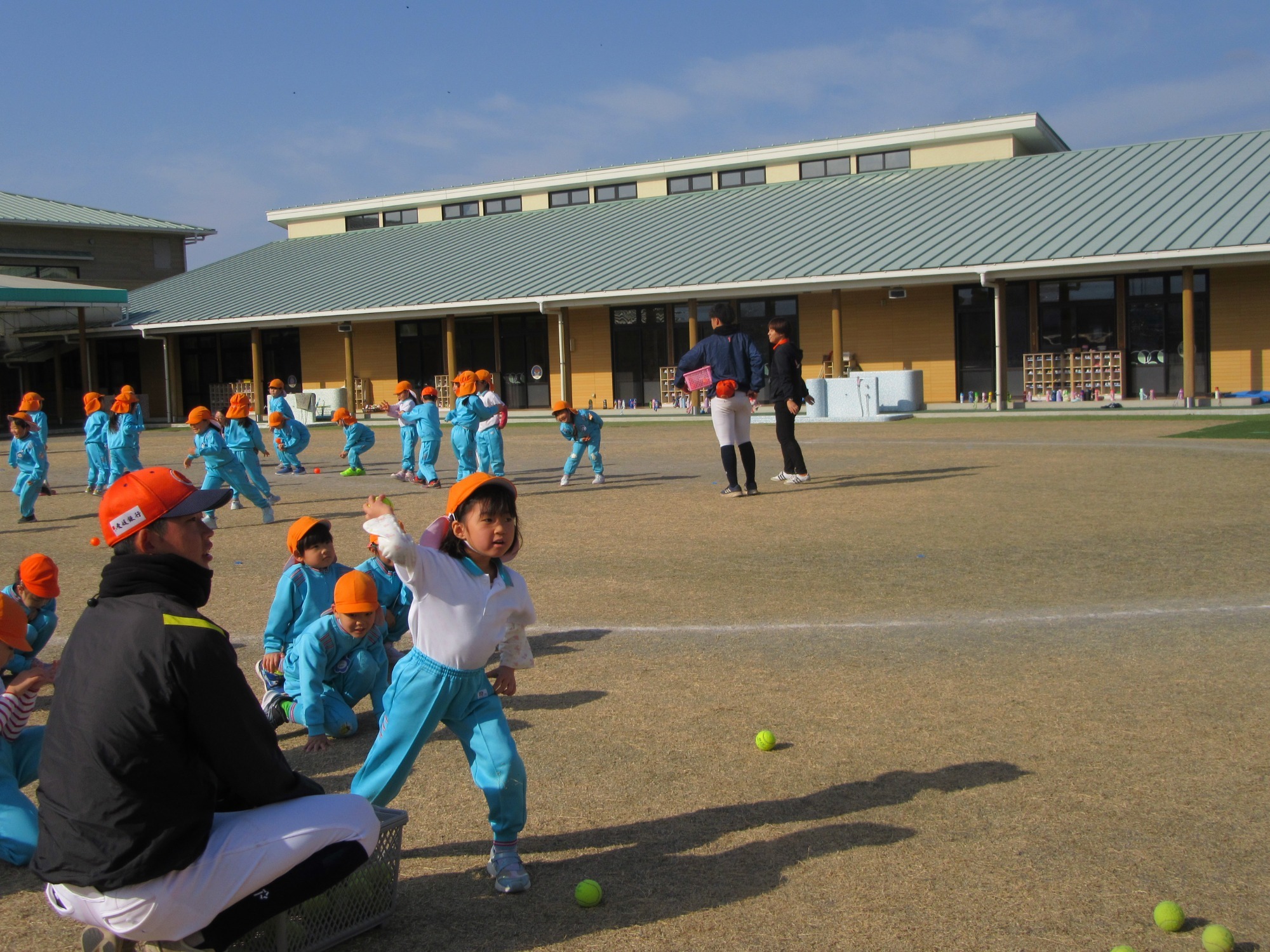 マンダリンパイレーツの監督と選手の方が年長さんを対象に野球教室を開いてくれました。はじめは選手のみなさん対子供たちで鬼ごっこです。選手の腰に挟んだキャップを取ったら勝ち!ですが、さすがは現役の選手。機敏な身のこなしで園児をかわし、なかなか取れませんでした!その後は、打つ、投げる、の基本を教えていただきました。みんな上手に楽しくできていましたね♪最後はもちろんマッピーが来てくれました!!年中、年少さんも出てきて、みんなで交流できました。マンダリンパイレーツの皆さんありがとうございました。3月に新シーズンが開幕します!みんなで応援しましょう!!