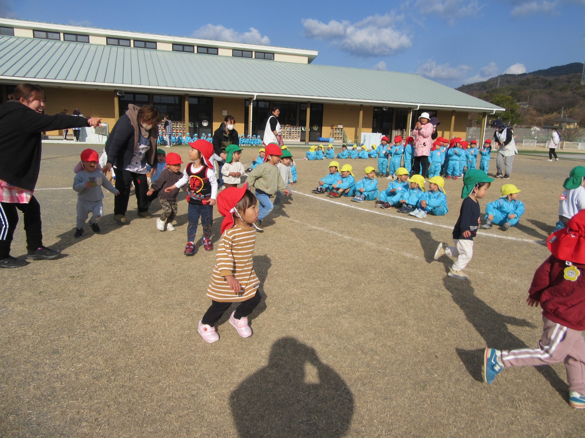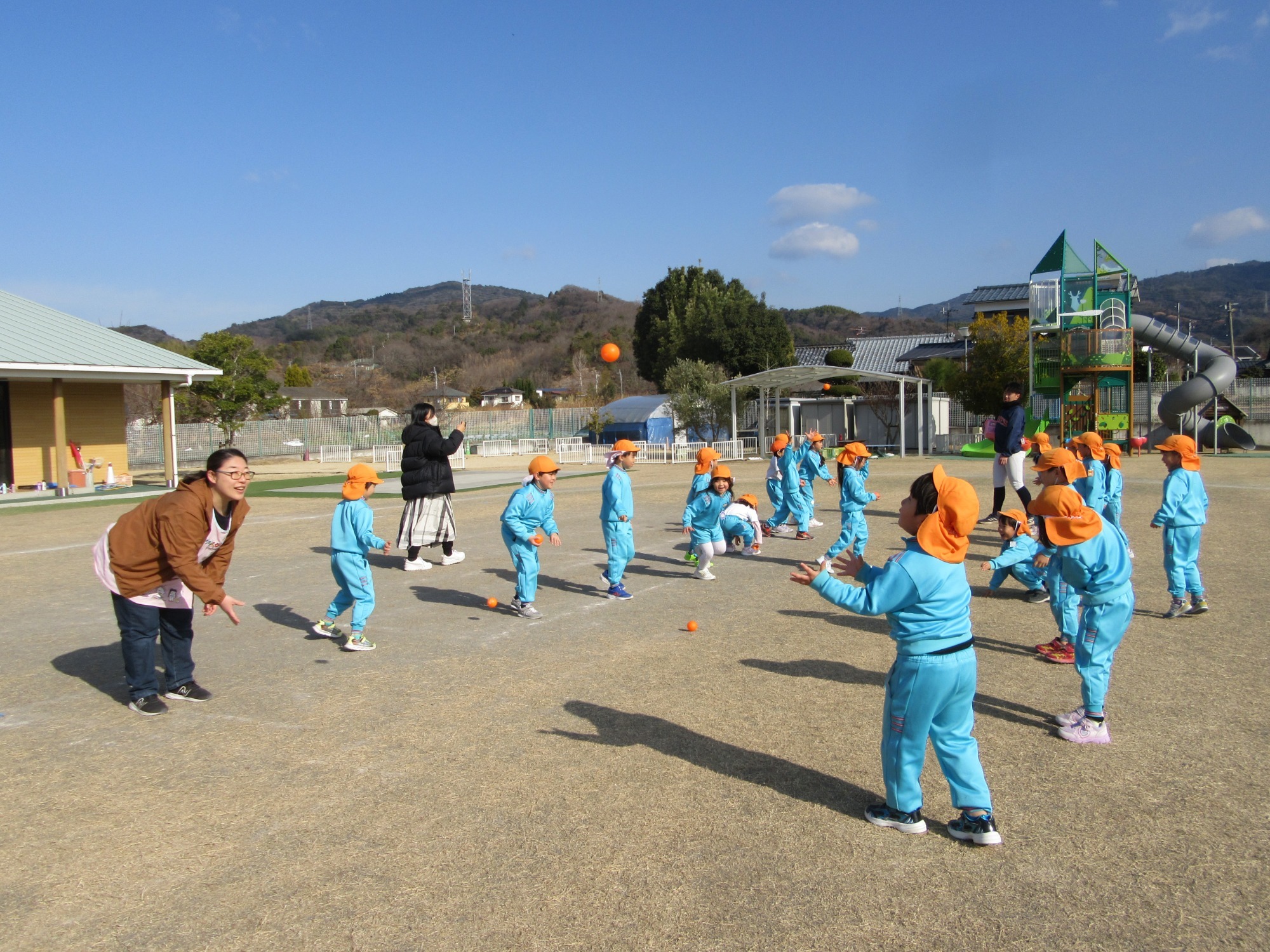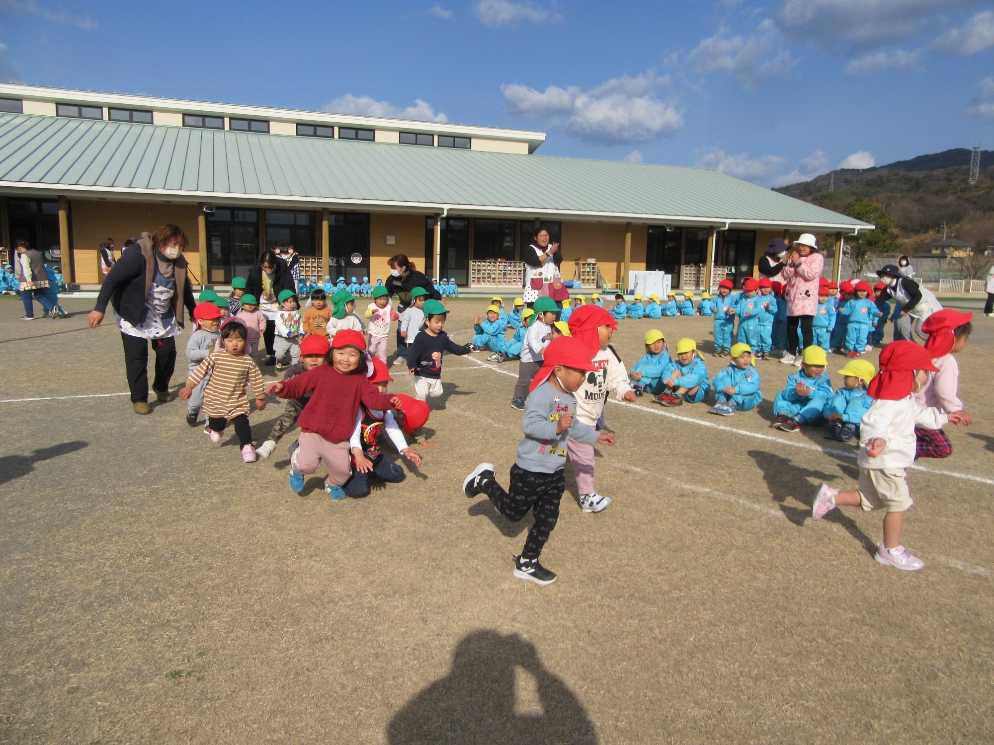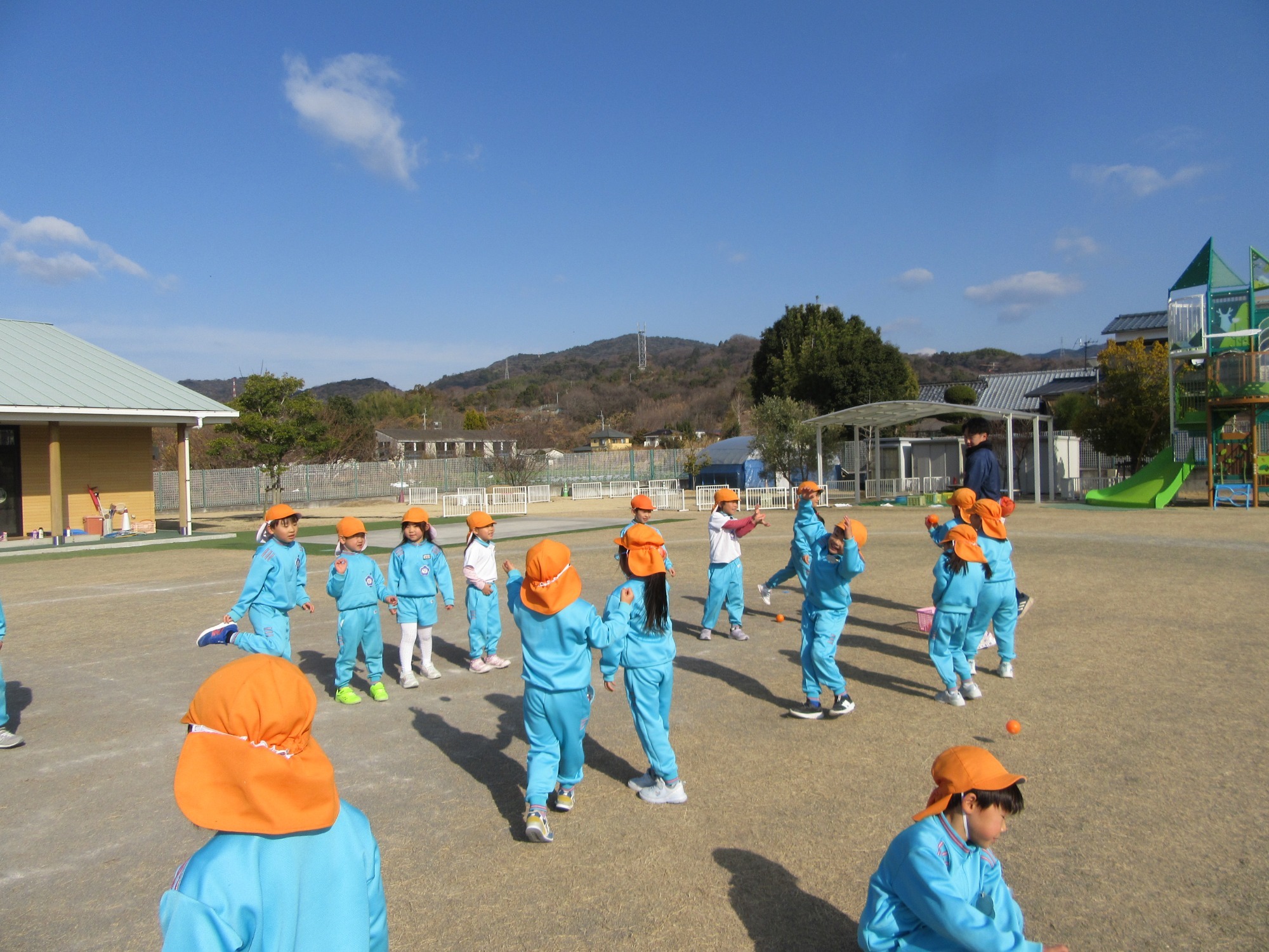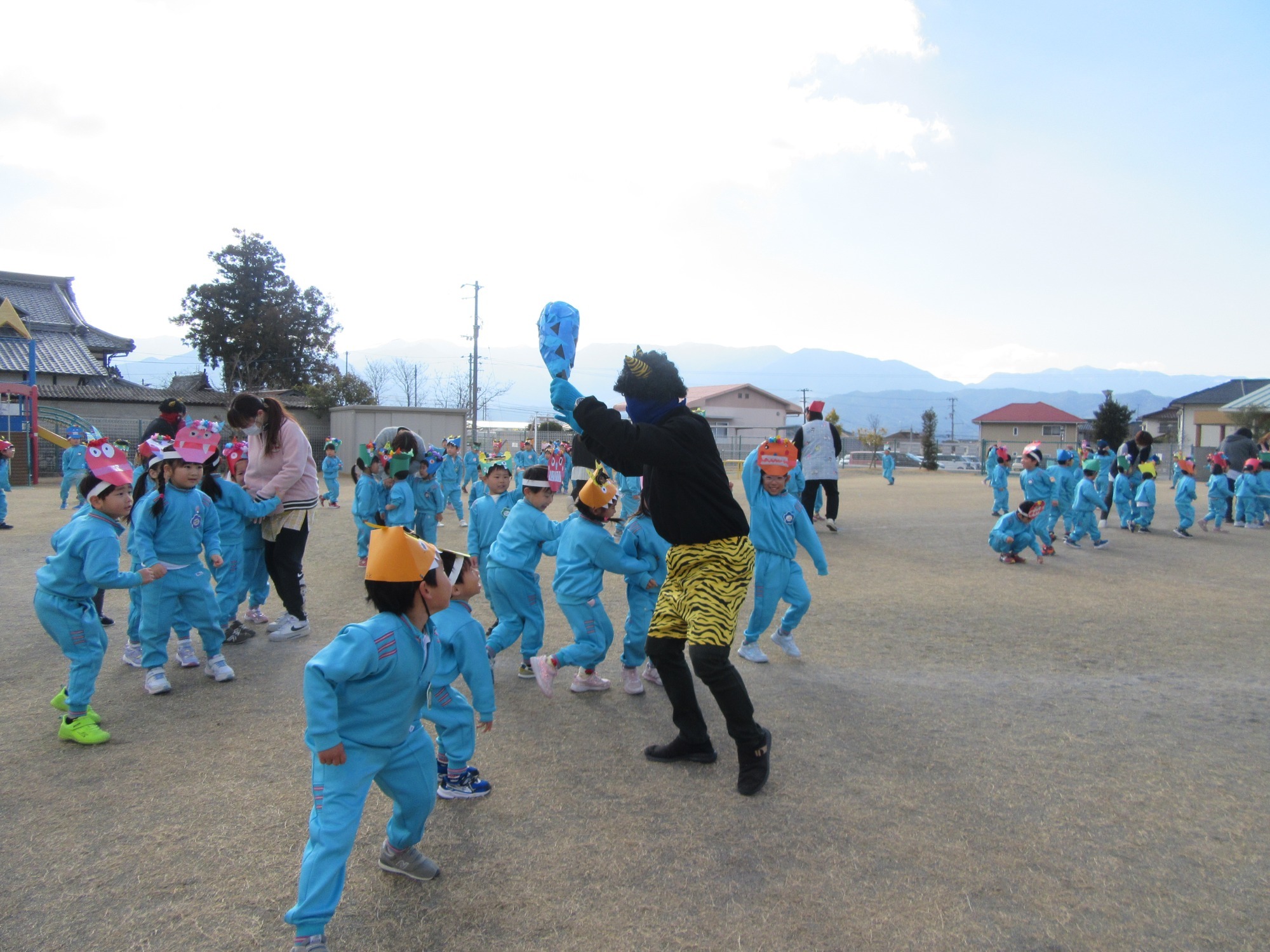 マンダリンパイレーツの監督と選手の方が年長さんを対象に野球教室を開いてくれました。はじめは選手のみなさん対子供たちで鬼ごっこです。選手の腰に挟んだキャップを取ったら勝ち!ですが、さすがは現役の選手。機敏な身のこなしで園児をかわし、なかなか取れませんでした!その後は、打つ、投げる、の基本を教えていただきました。みんな上手に楽しくできていましたね♪最後はもちろんマッピーが来てくれました!!年中、年少さんも出てきて、みんなで交流できました。マンダリンパイレーツの皆さんありがとうございました。3月に新シーズンが開幕します!みんなで応援しましょう!!