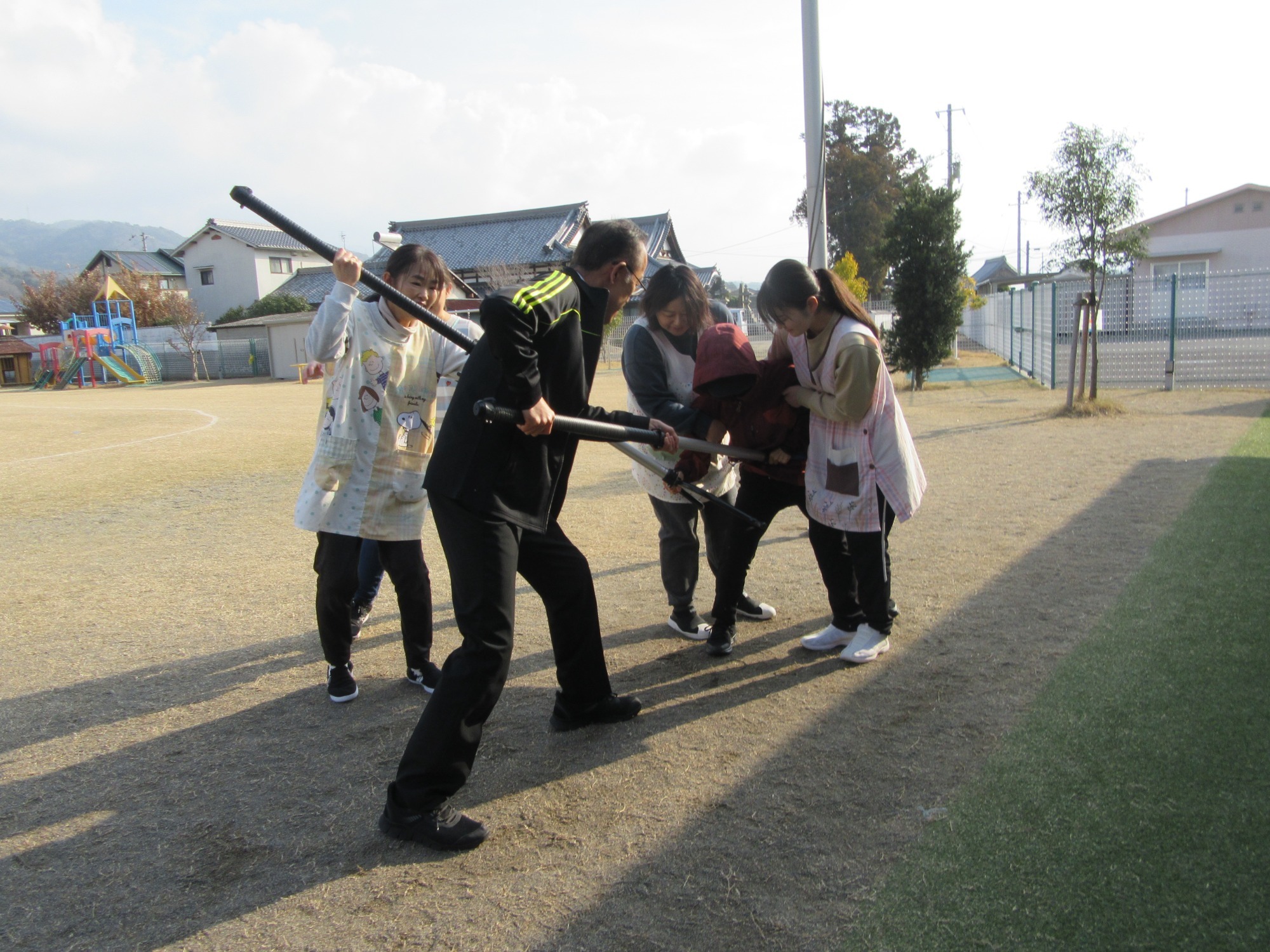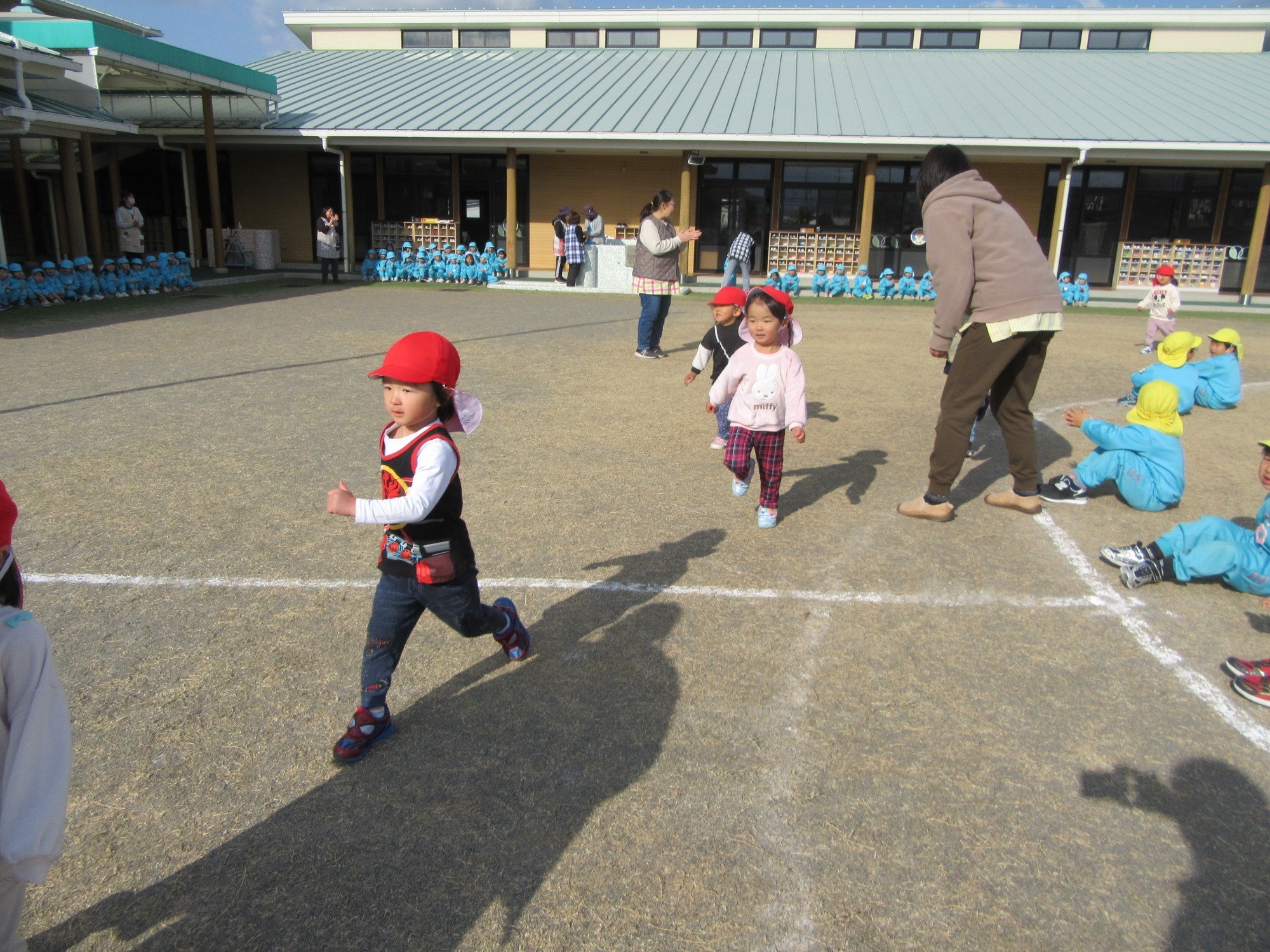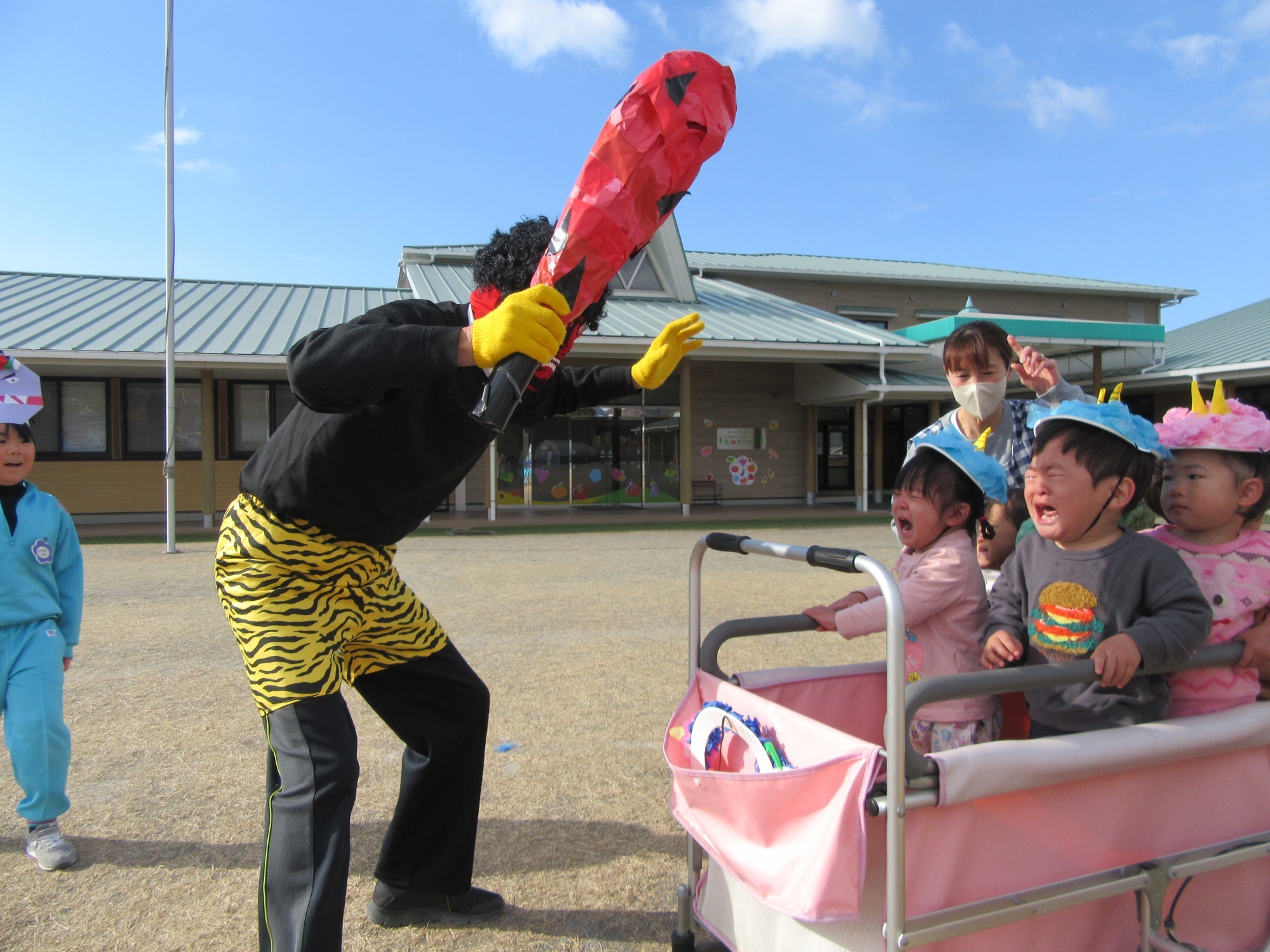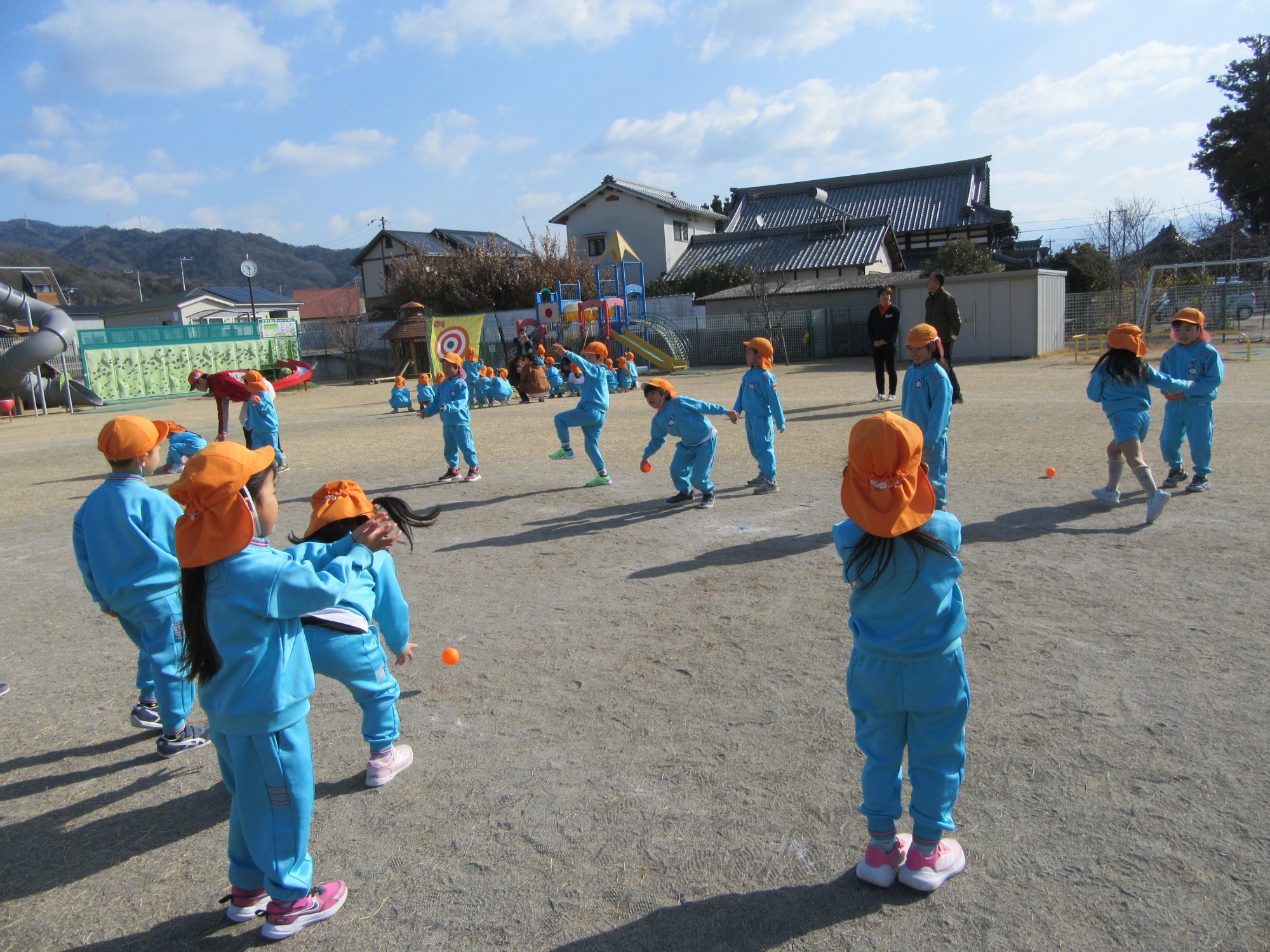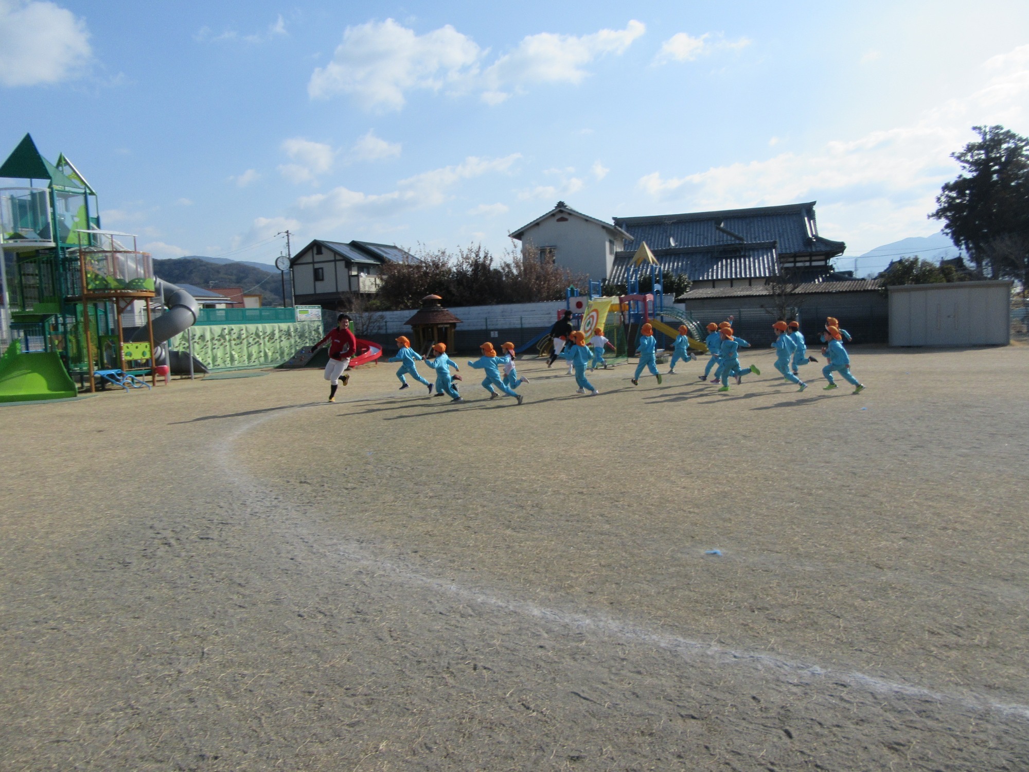 マンダリンパイレーツの監督と選手の方が年長さんを対象に野球教室を開いてくれました。はじめは選手のみなさん対子供たちで鬼ごっこです。選手の腰に挟んだキャップを取ったら勝ち!ですが、さすがは現役の選手。機敏な身のこなしで園児をかわし、なかなか取れませんでした!その後は、打つ、投げる、の基本を教えていただきました。みんな上手に楽しくできていましたね♪最後はもちろんマッピーが来てくれました!!年中、年少さんも出てきて、みんなで交流できました。マンダリンパイレーツの皆さんありがとうございました。3月に新シーズンが開幕します!みんなで応援しましょう!!