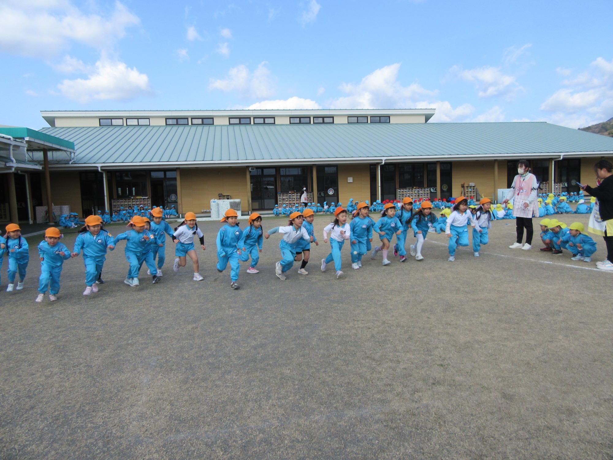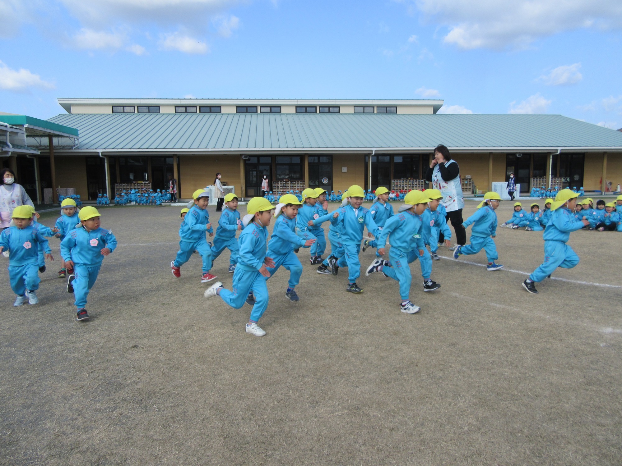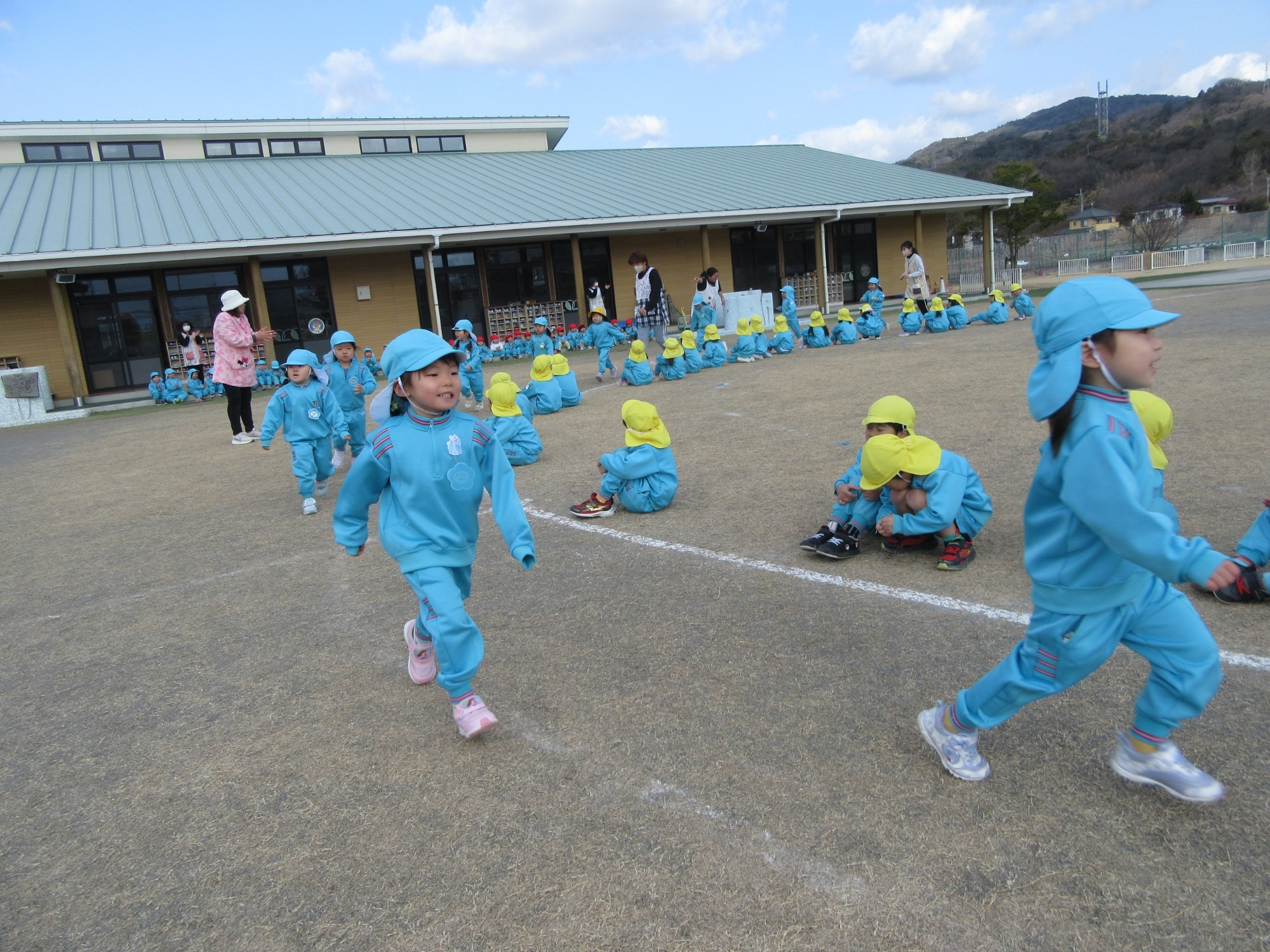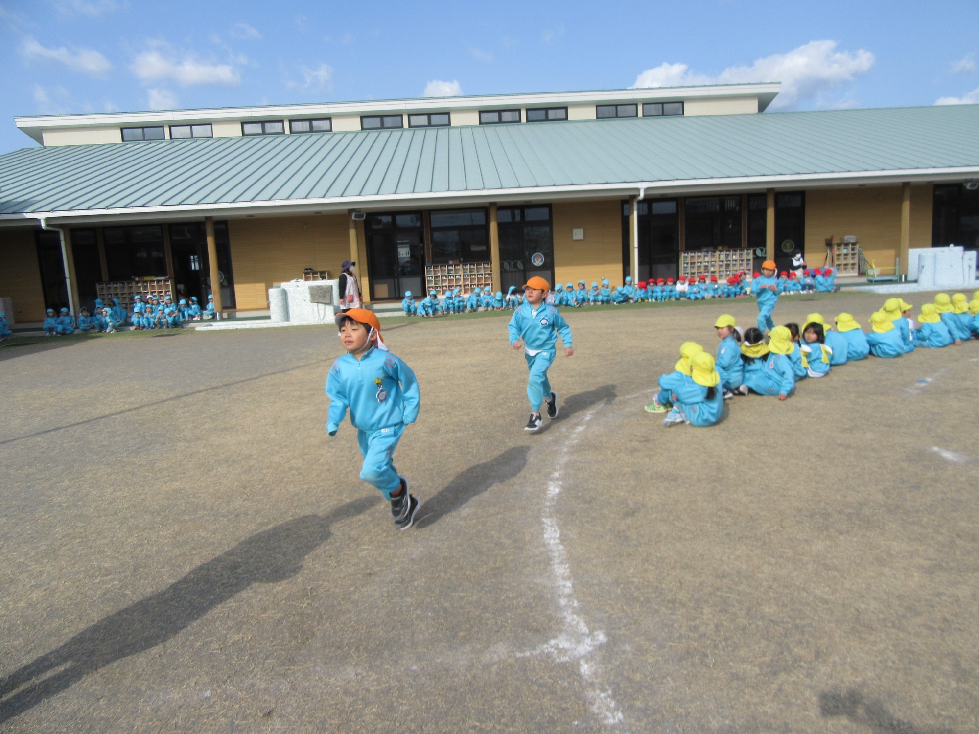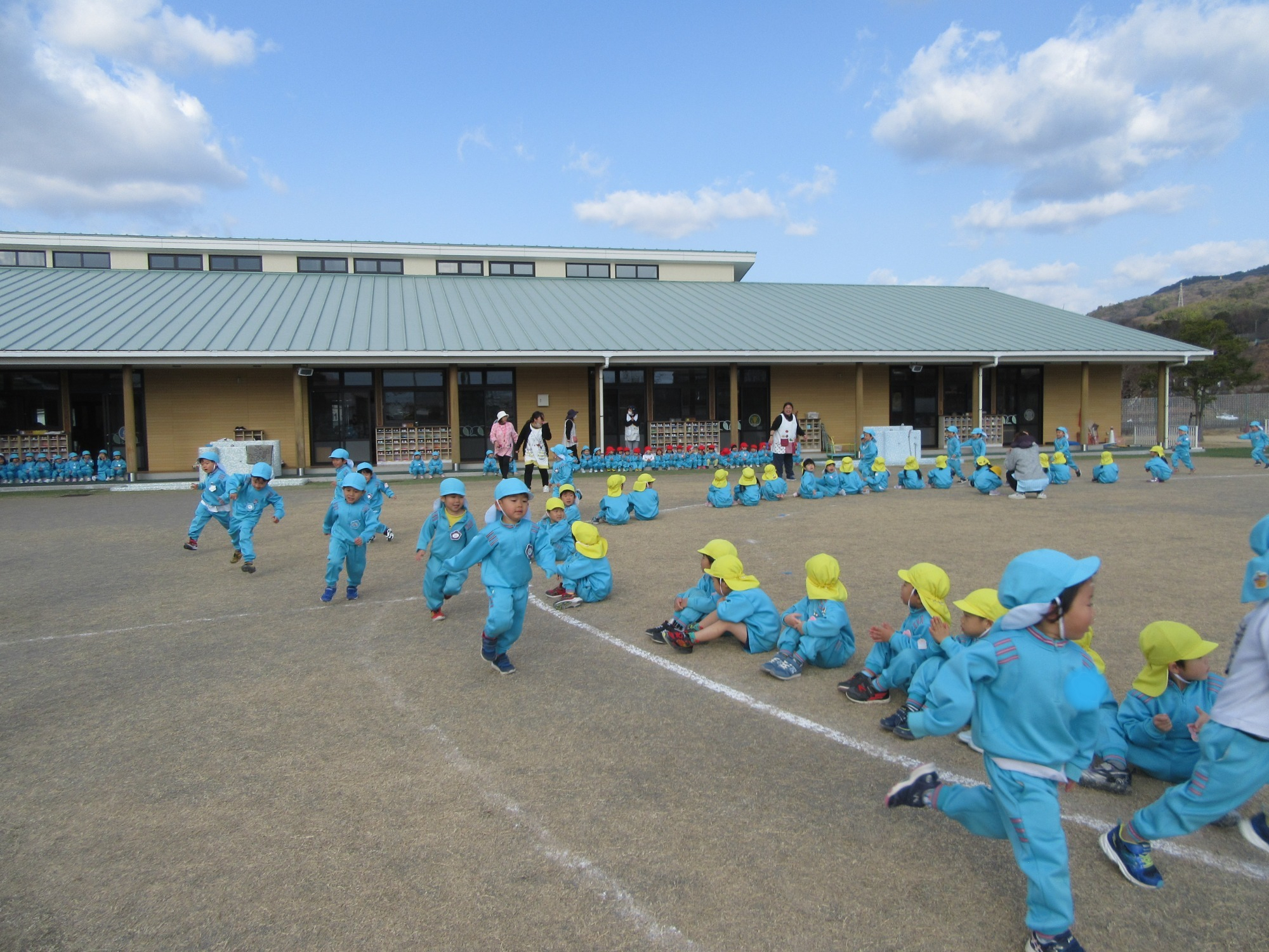 今日は避難訓練です。先生のお話をよく聞いて行動できたかな?「お・は・し・も」のお約束を守ってね!!