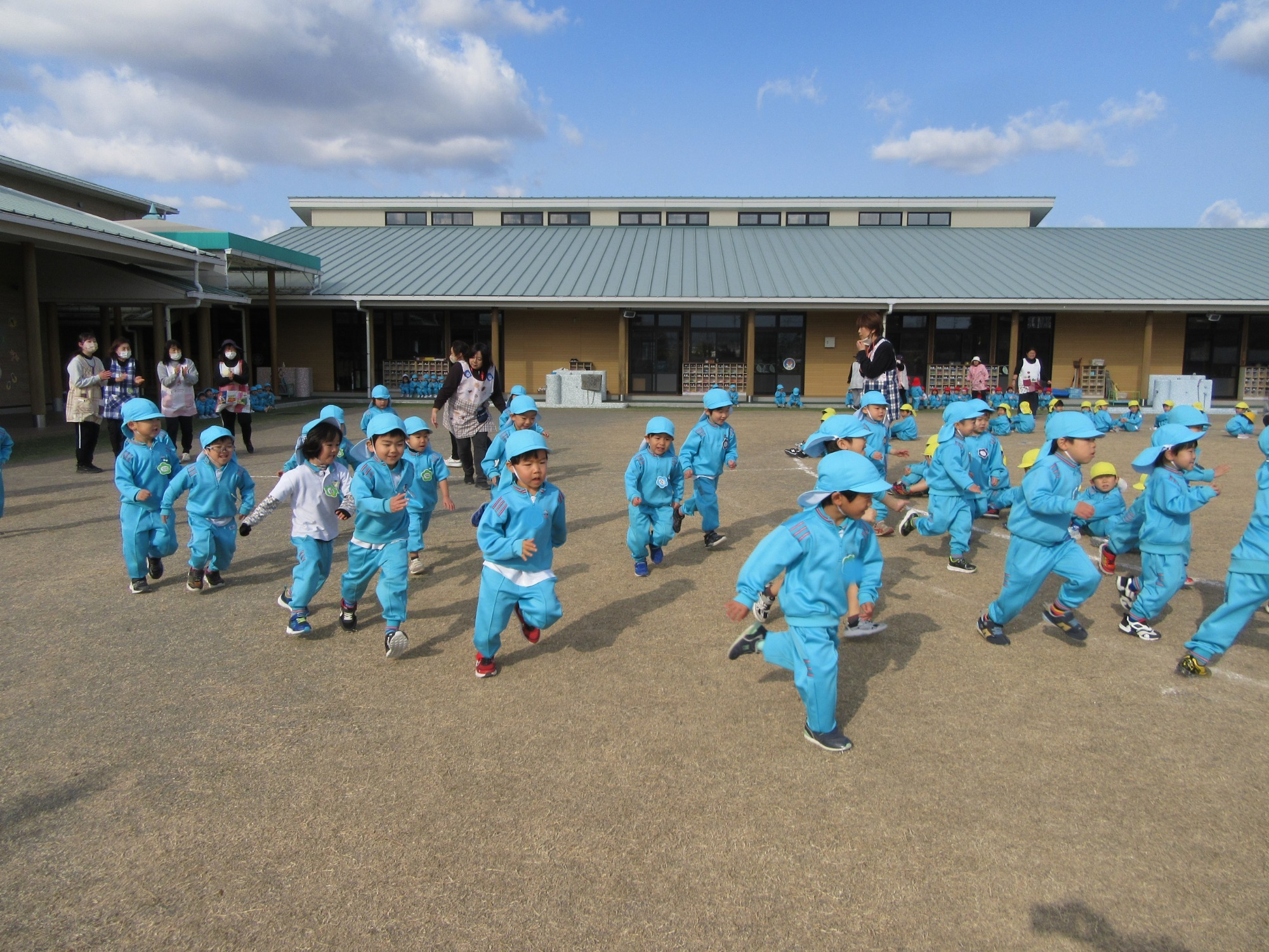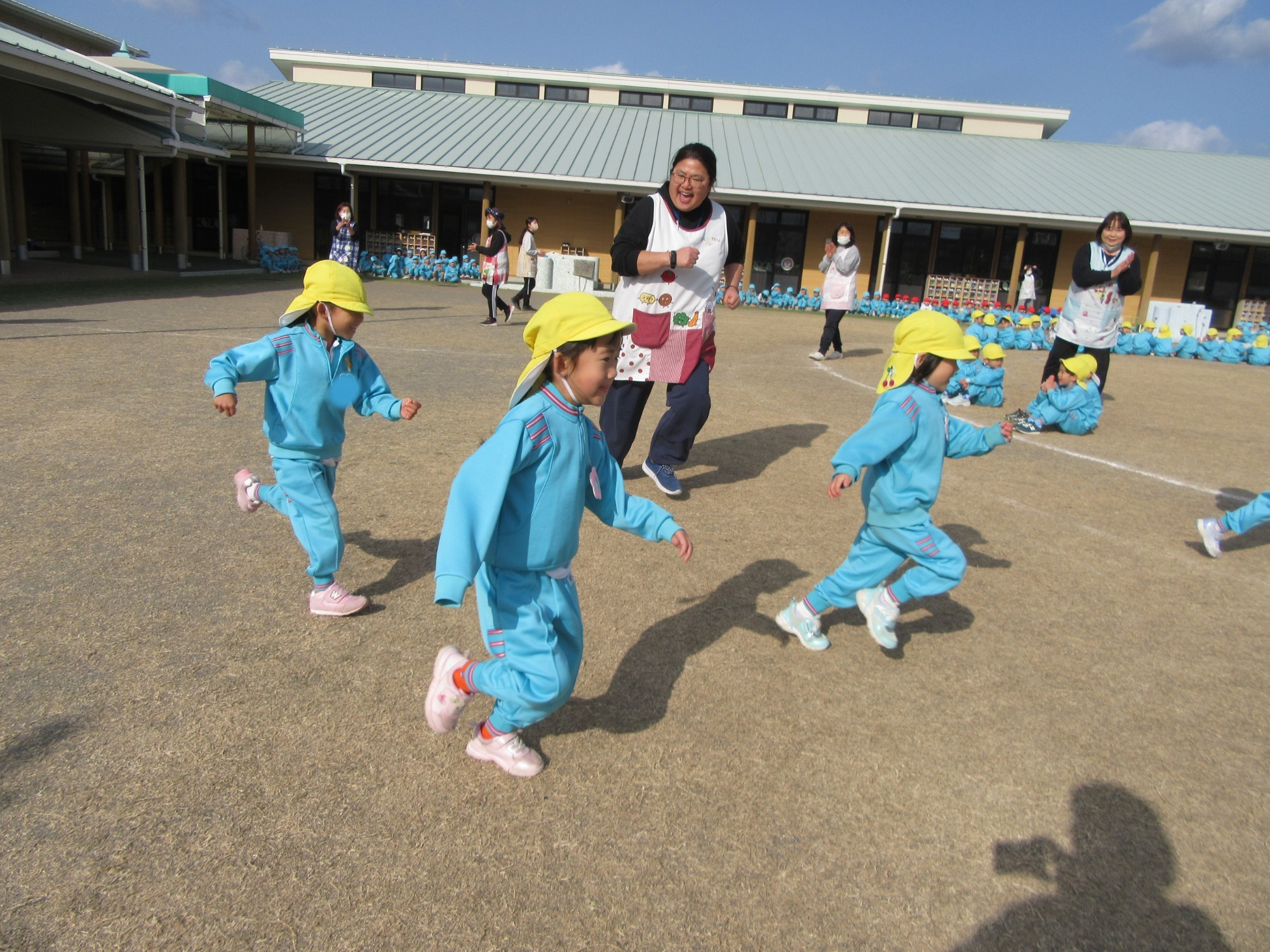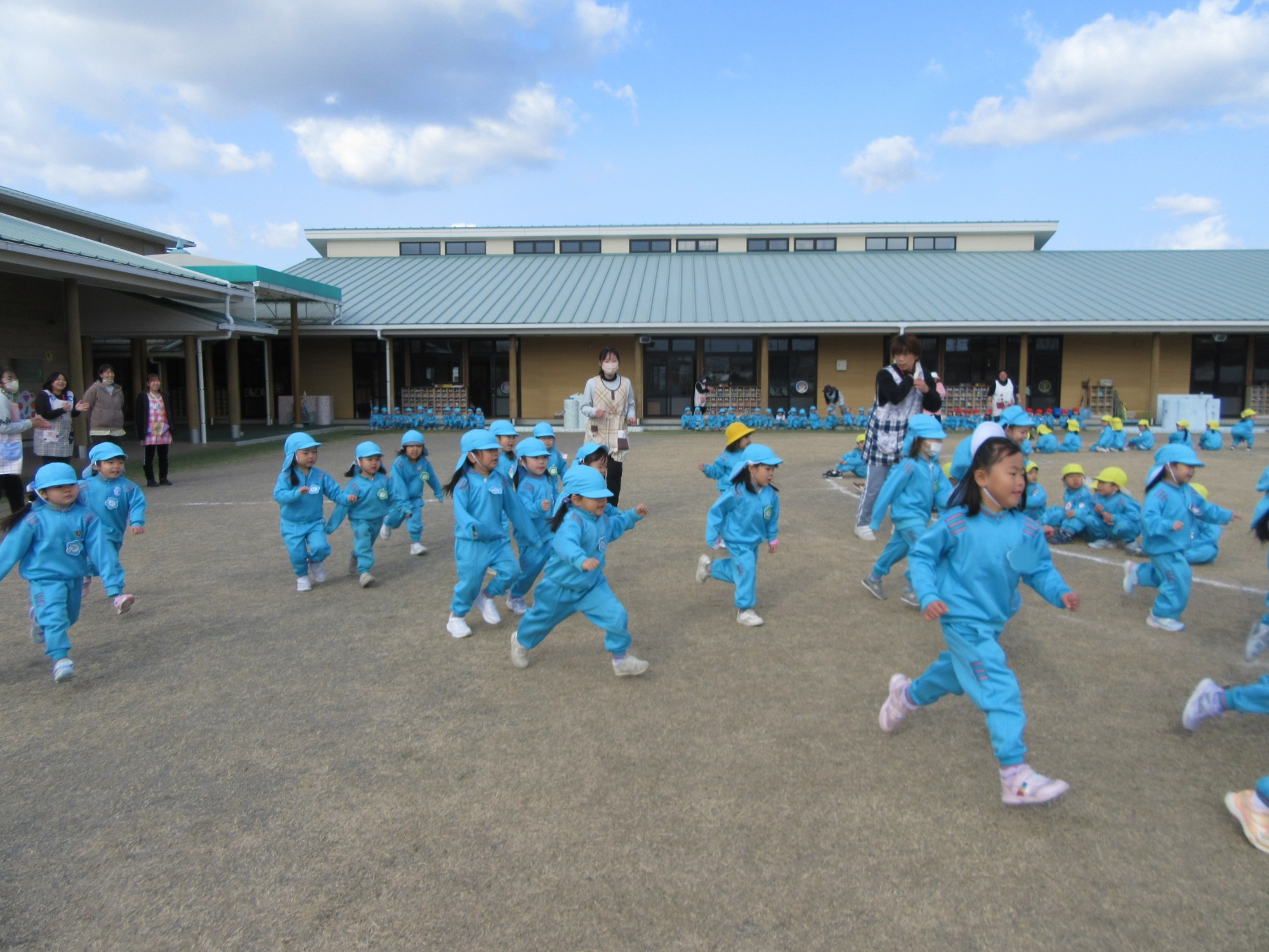 先日、避難訓練・引渡し訓練を行いました。保護者の皆様にもご協力いただき、ありがとうございました。各クラスでも避難訓練は行っていますが全体での訓練は初めてだったので、年少さんは少し驚いてしまった子もいたかもしれません。いつどこで起こるか分からないのが災害です。いざという時に大切な命を守る行動が出来るよう、繰返し訓練をしていきます。